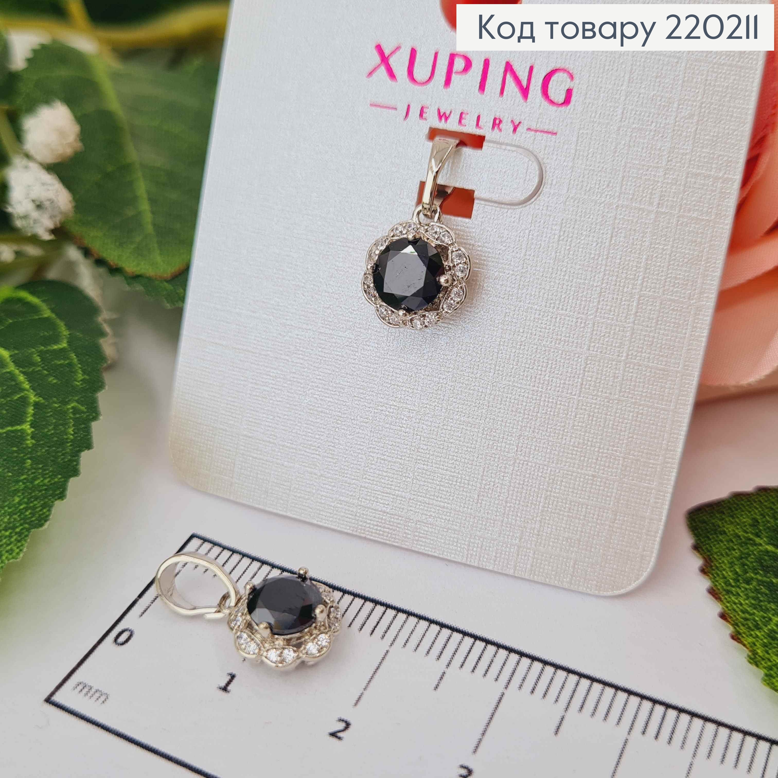 Кулон родований, з чорним камінцем в оправі з камінчиків, 1см, Xuping 18K