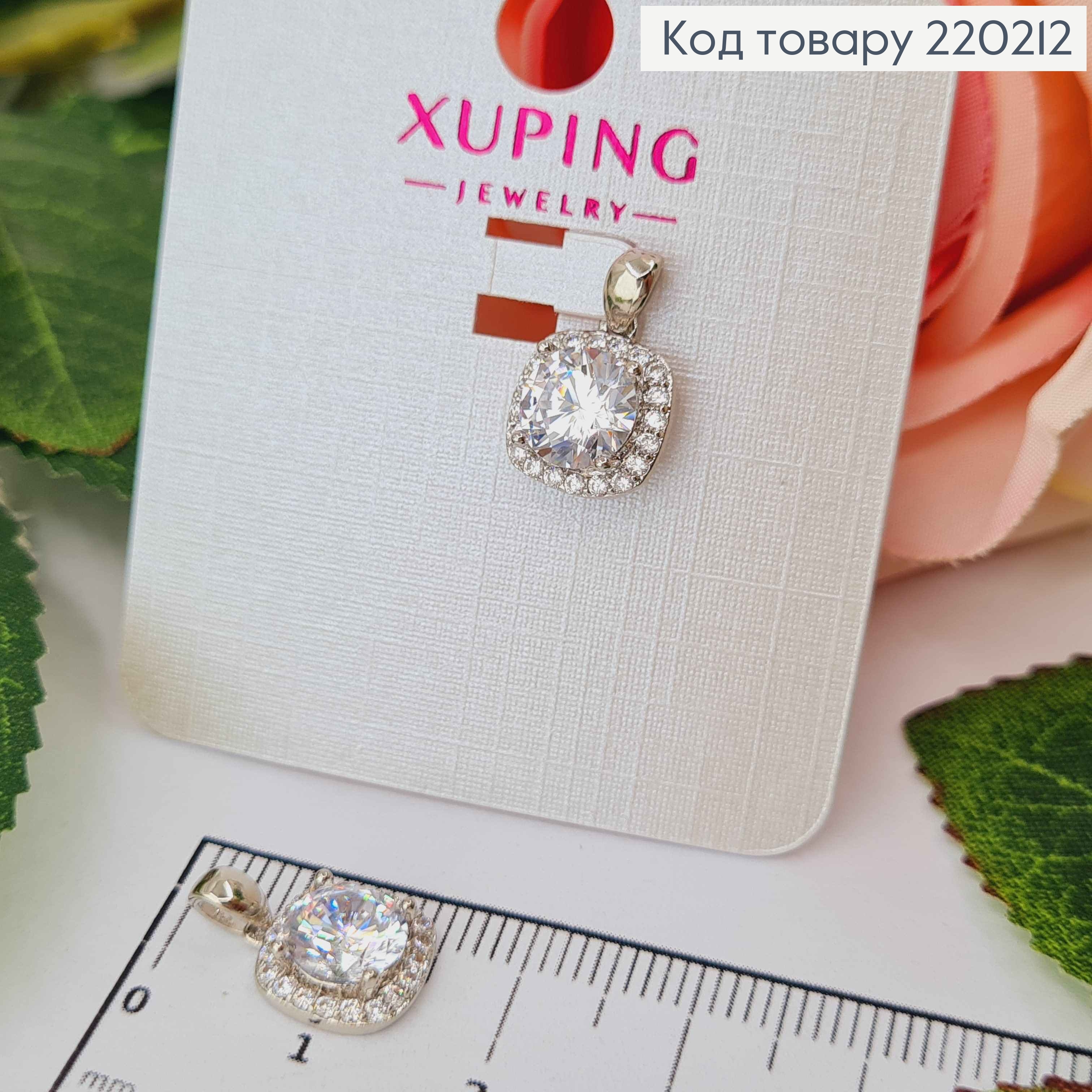 Кулон родований, з квадратним камінцем в оправі з камінчиків, 1см, Xuping 18K