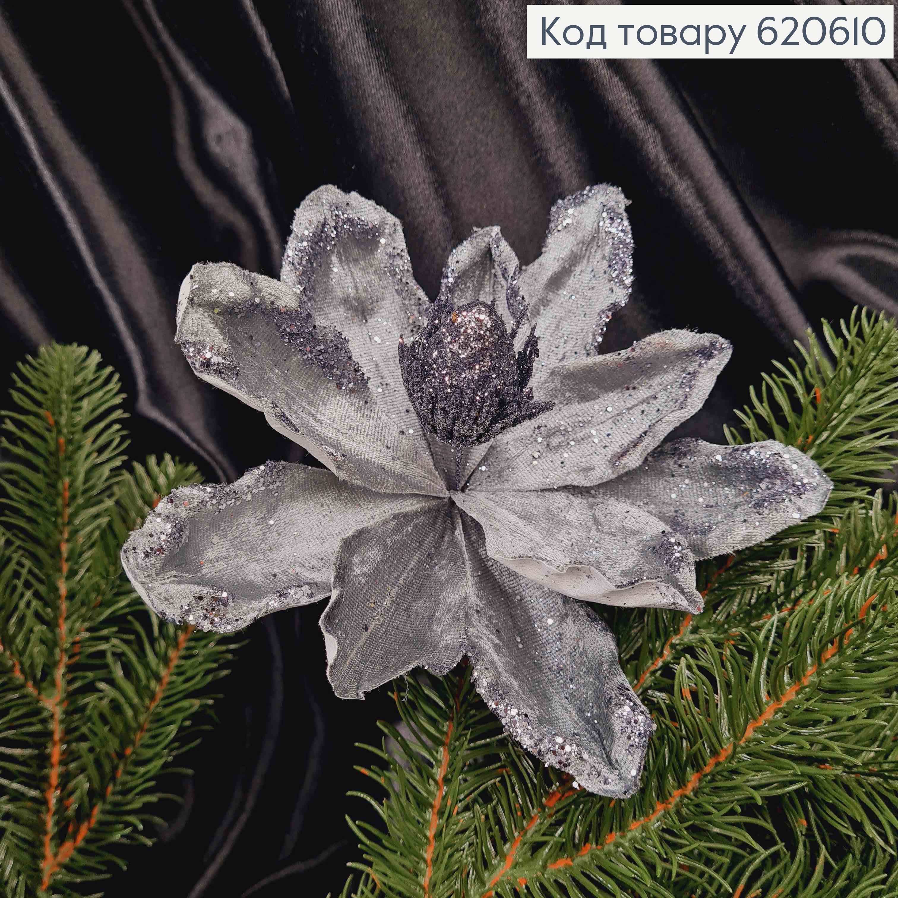 Квітка МАГНОЛІЇ,розкішний СІРИЙ, діаметр 19-21см, оксамитовий, на мет.стержні 19см
