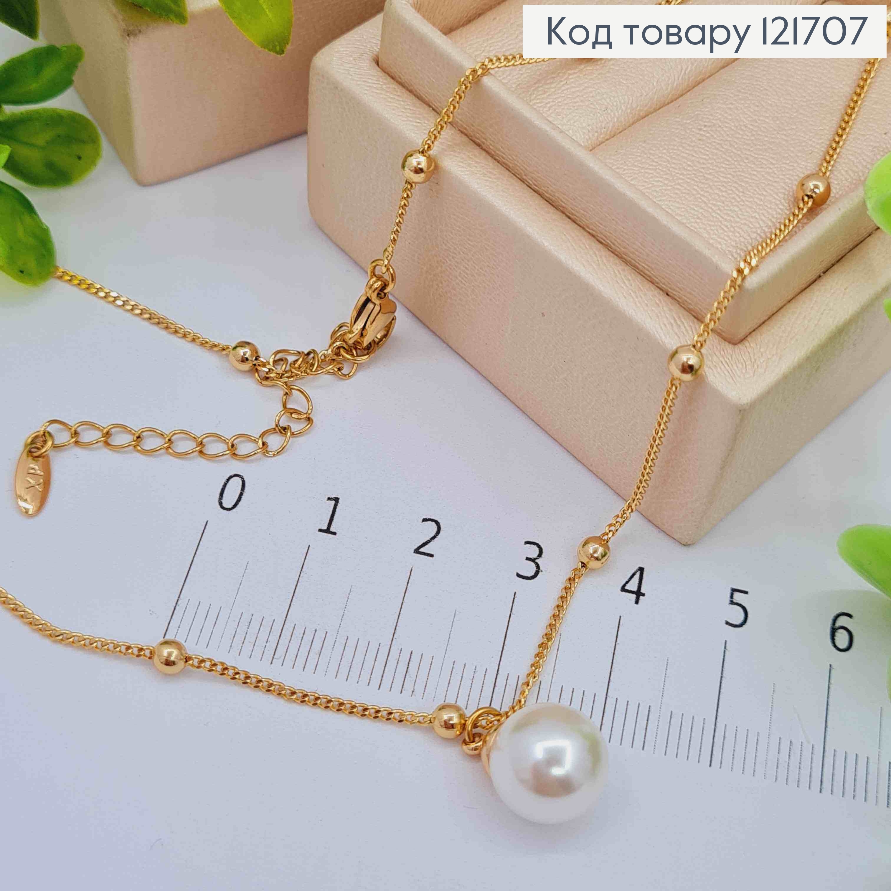 Ланцюжок ПАНЦИРНЕ плетіння з Кульками та Перлинкою (1см), довжина 45+5см, Xuping 18К