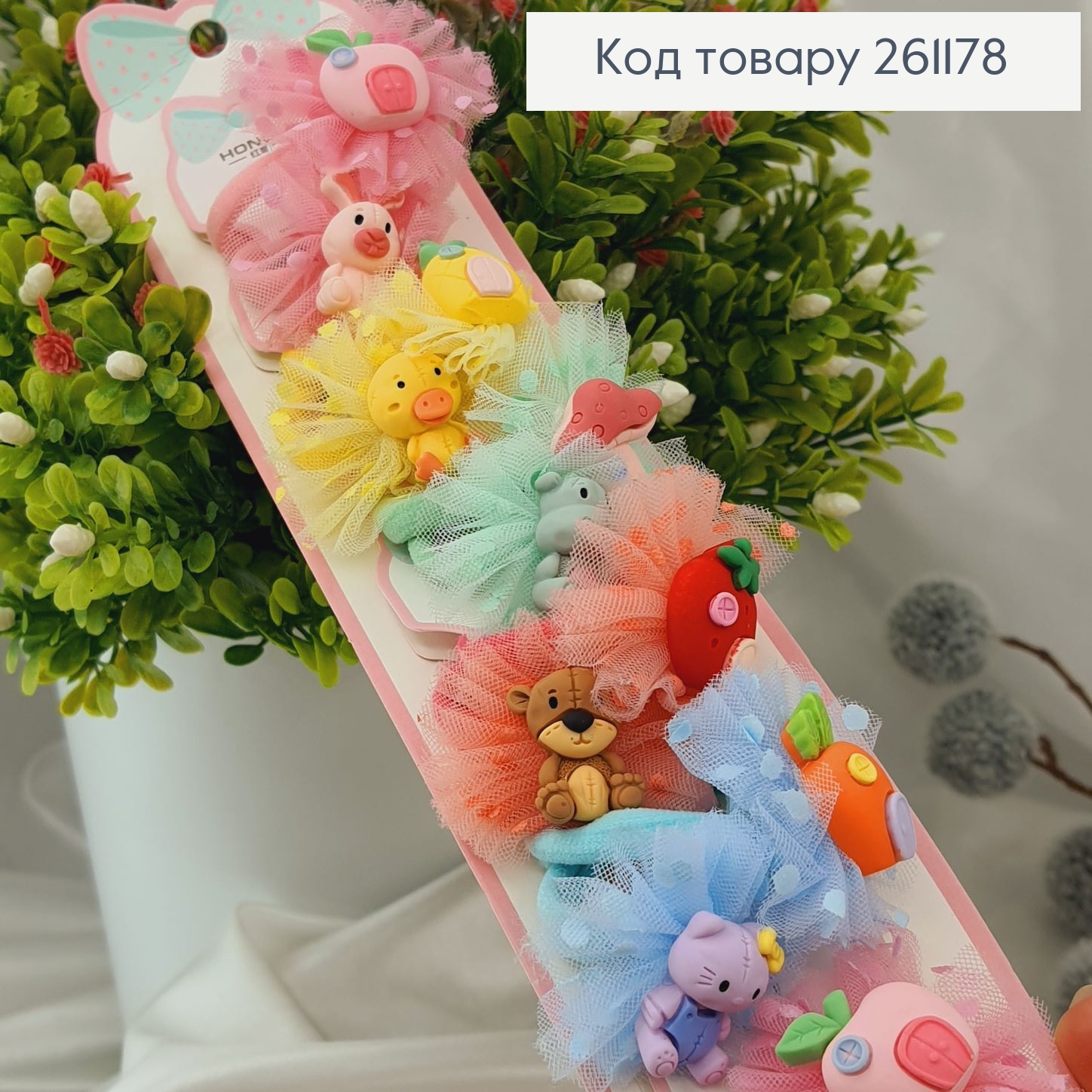 Набір резинок (20шт) "Тваринки" з бантиком, Пастельні кольори, резинка 3см, тваринки 2,5см 261387 фото