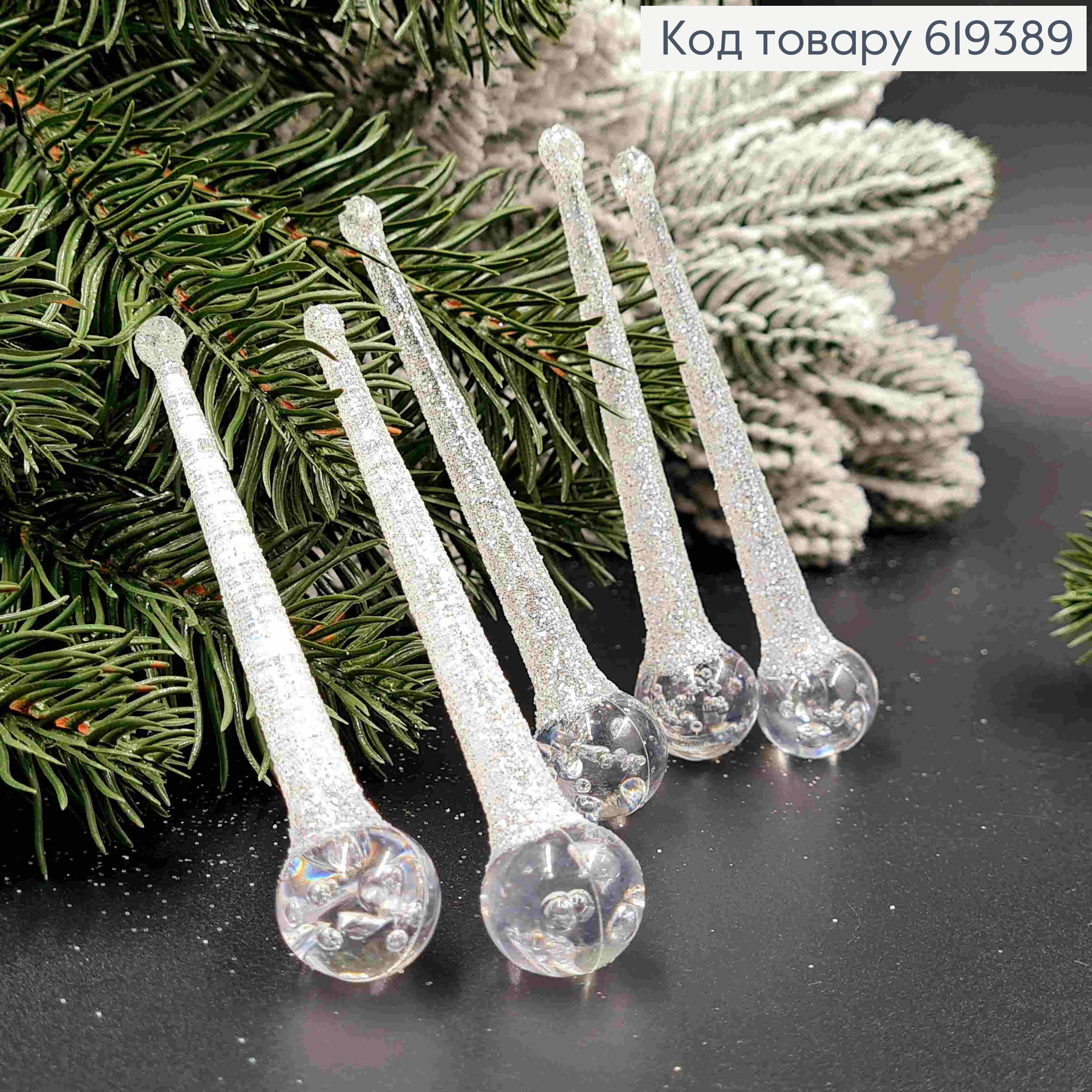 Набір фігурок (5шт) "Капля" , ПРОЗОРІ з  блиском, довжина 13см, новорічна прикраса, пластик 619392 фото