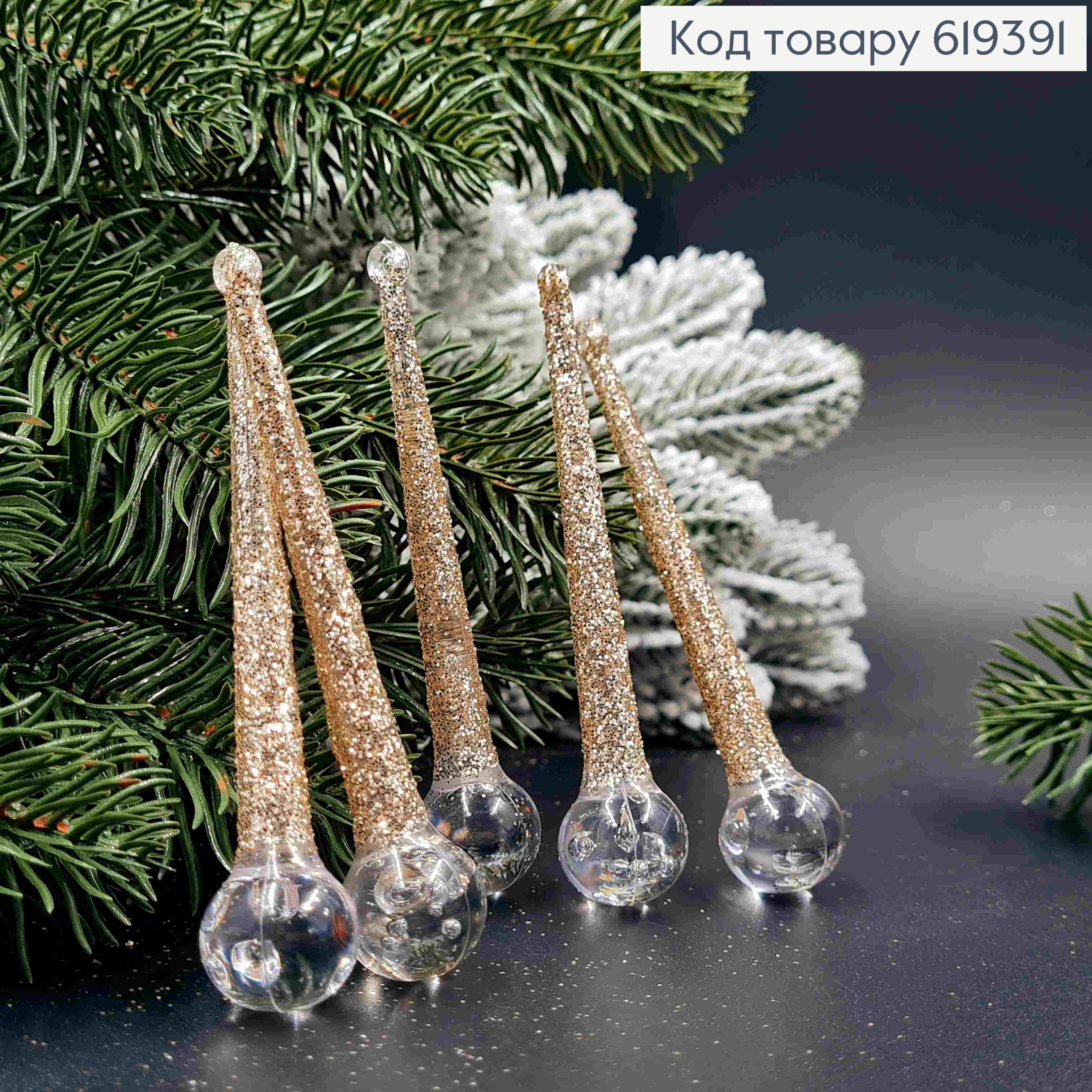 Набір фігурок (5шт) "Капля" , ПРОЗОРІ з  ШАМПАНЬ блиском, довжина 13см, новорічна прикраса, пластик 619393 фото
