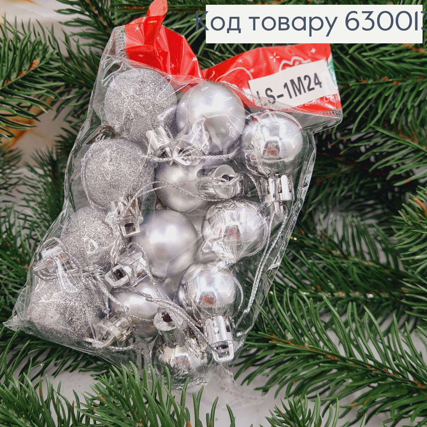 Набір іграшок 30 мм срібних глітер Китай 12 шт пакет