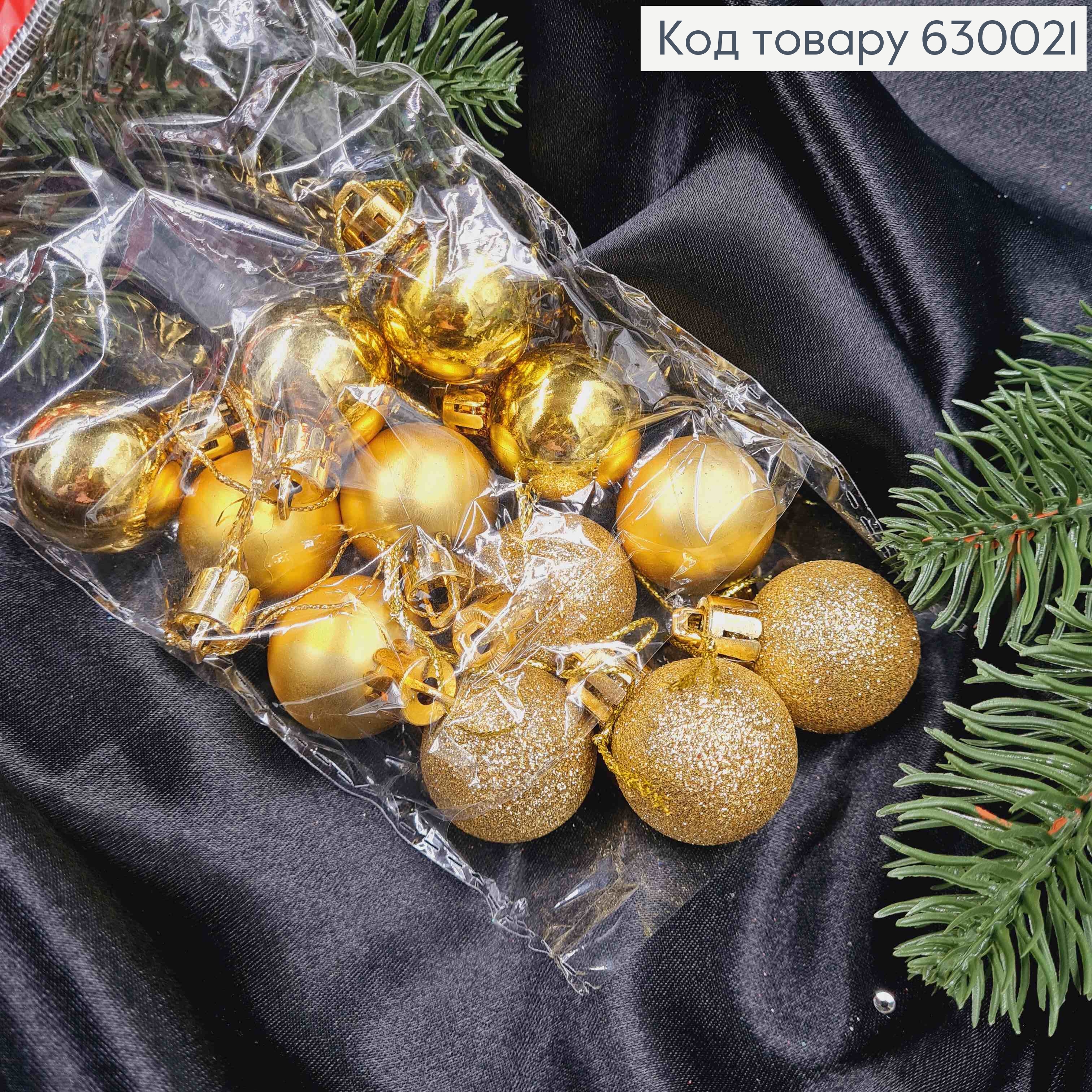 Набір іграшок 30 мм ЗОЛОТІ, Китай ,12 шт, (глітер,матові, глянцеві)