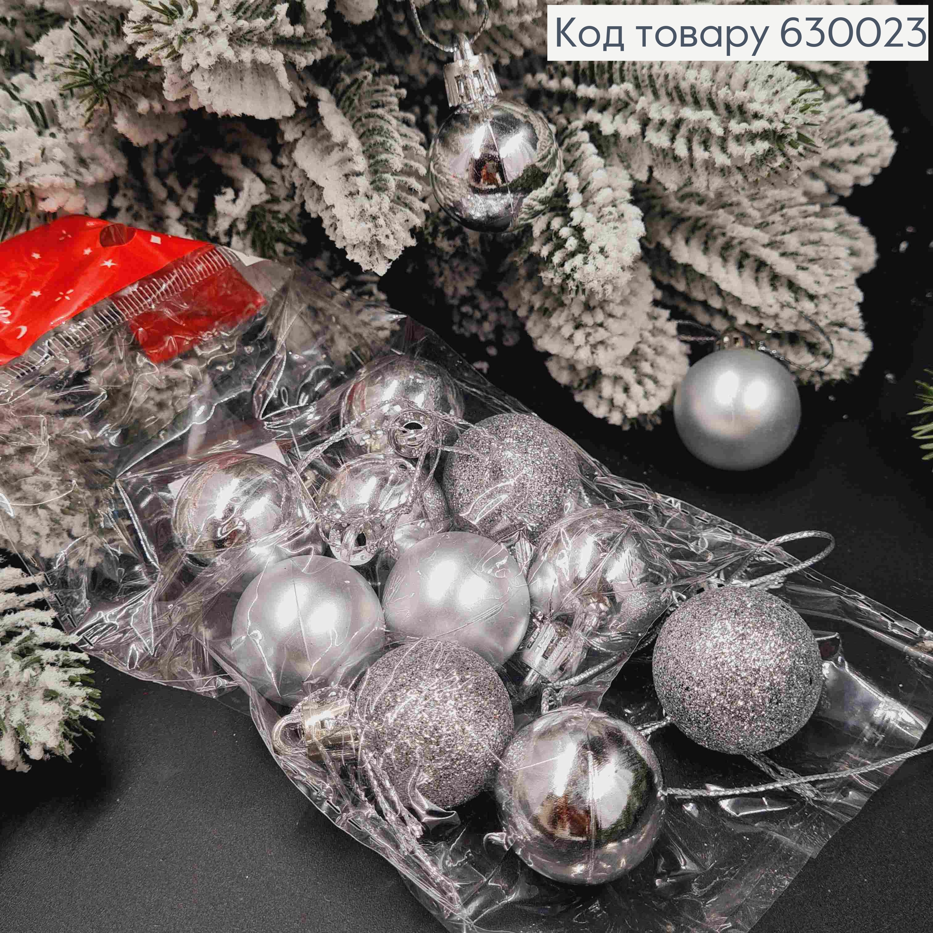 Набір іграшок (30мм) СРІБНІ, Китай ,12 шт/уп, (глітер,матові, глянцеві)