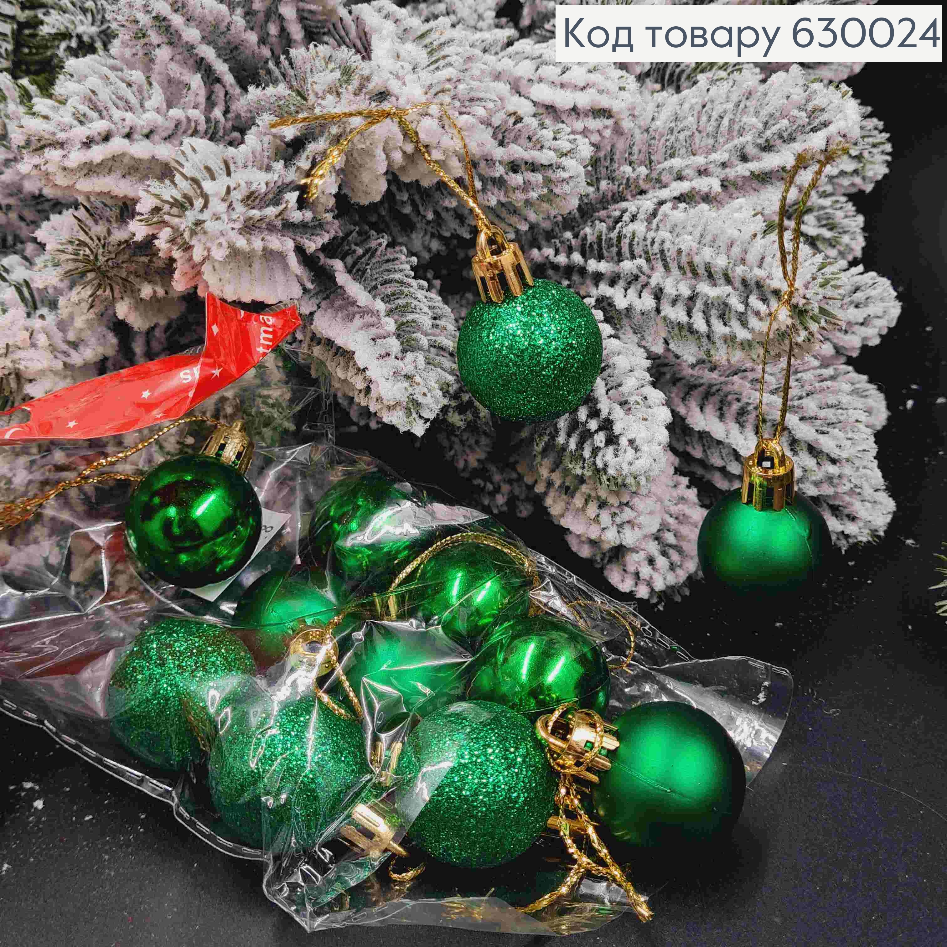 Набір іграшок (40мм) ЗЕЛЕНІ, Китай , 6 шт/уп, (глітер,матові, глянцеві) 641020 фото