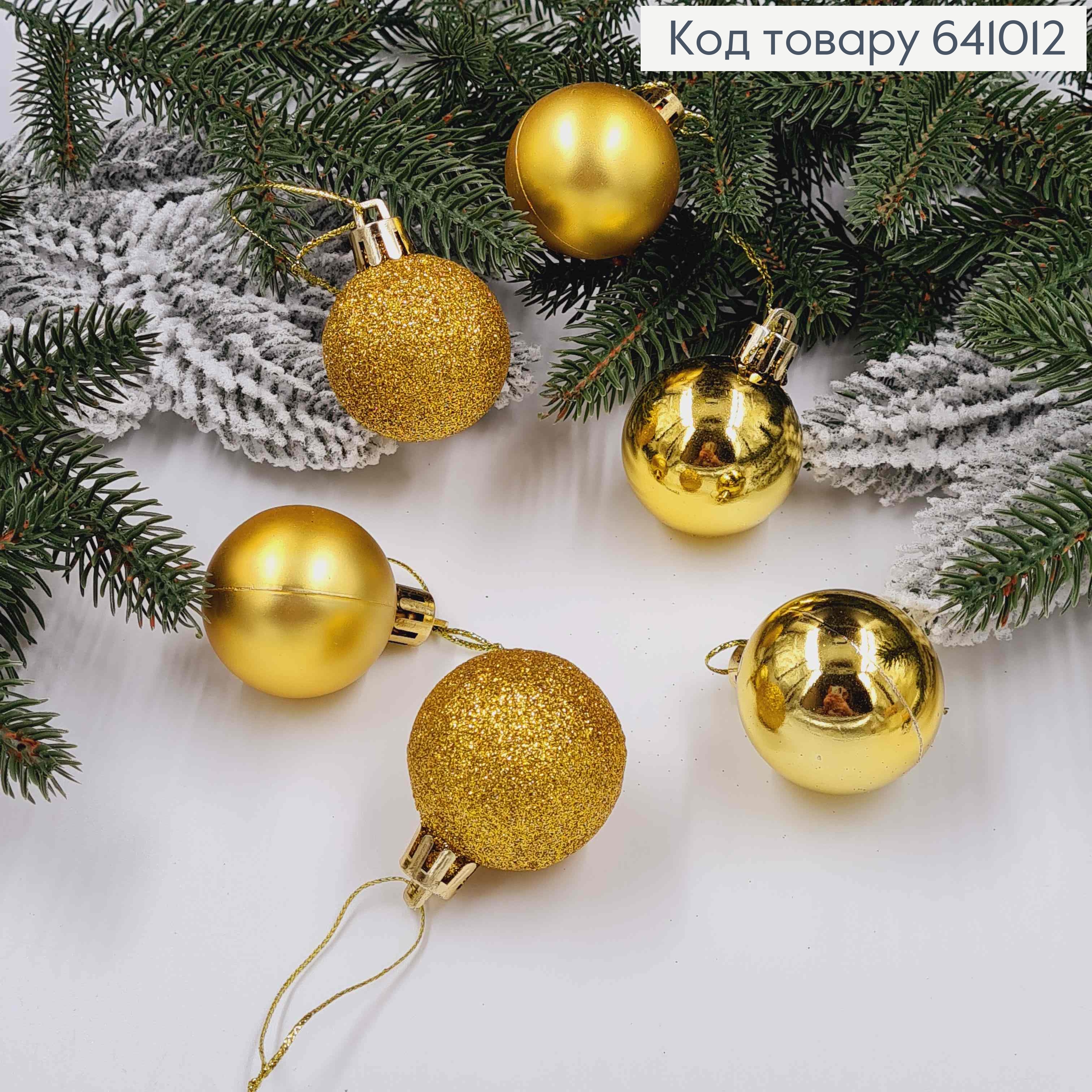 Набір іграшок 30 мм ЗОЛОТІ, Китай ,12 шт, (глітер,матові, глянцеві) 630021 фото