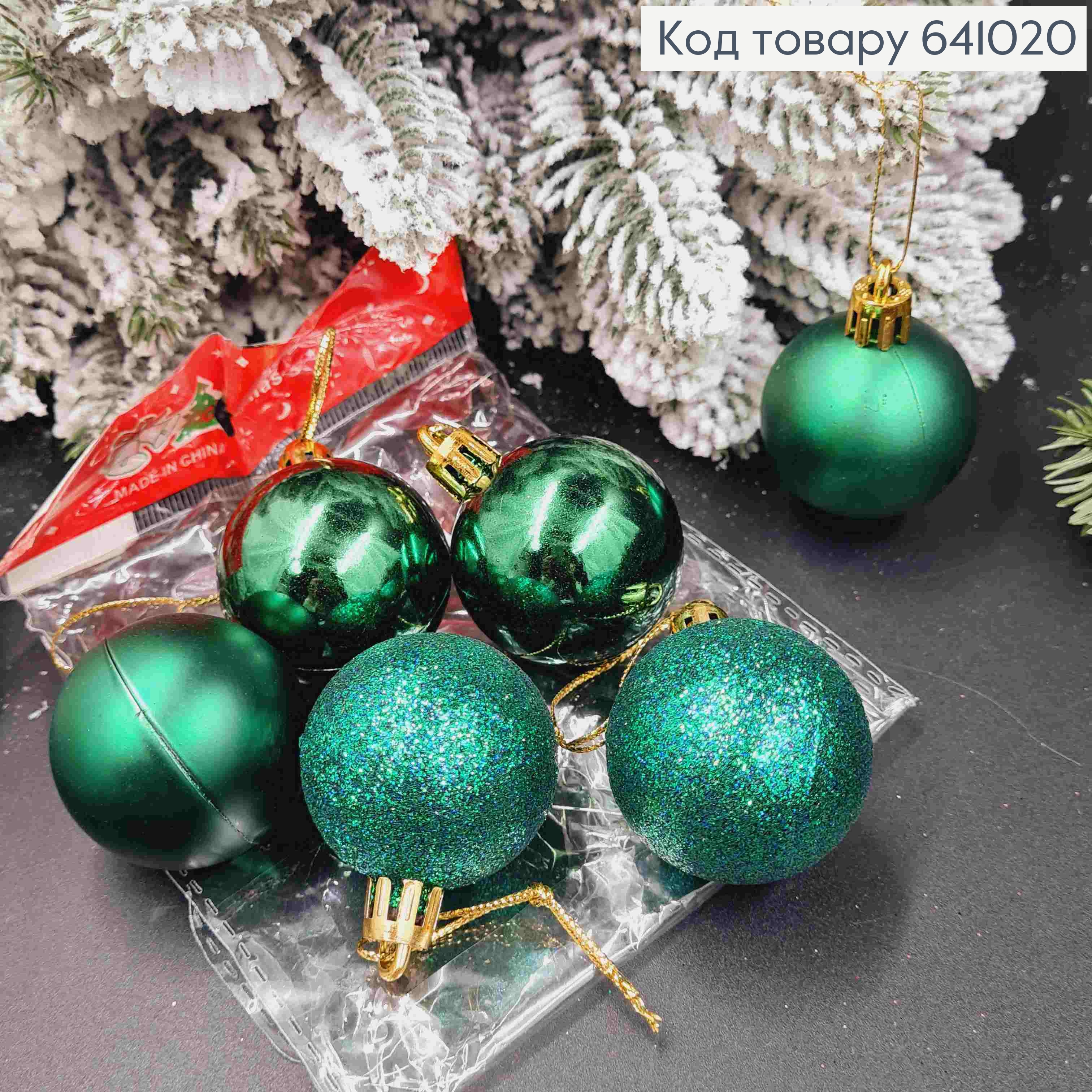 Набір іграшок (40мм) ЗЕЛЕНІ, Китай , 6 шт/уп, (глітер,матові, глянцеві)