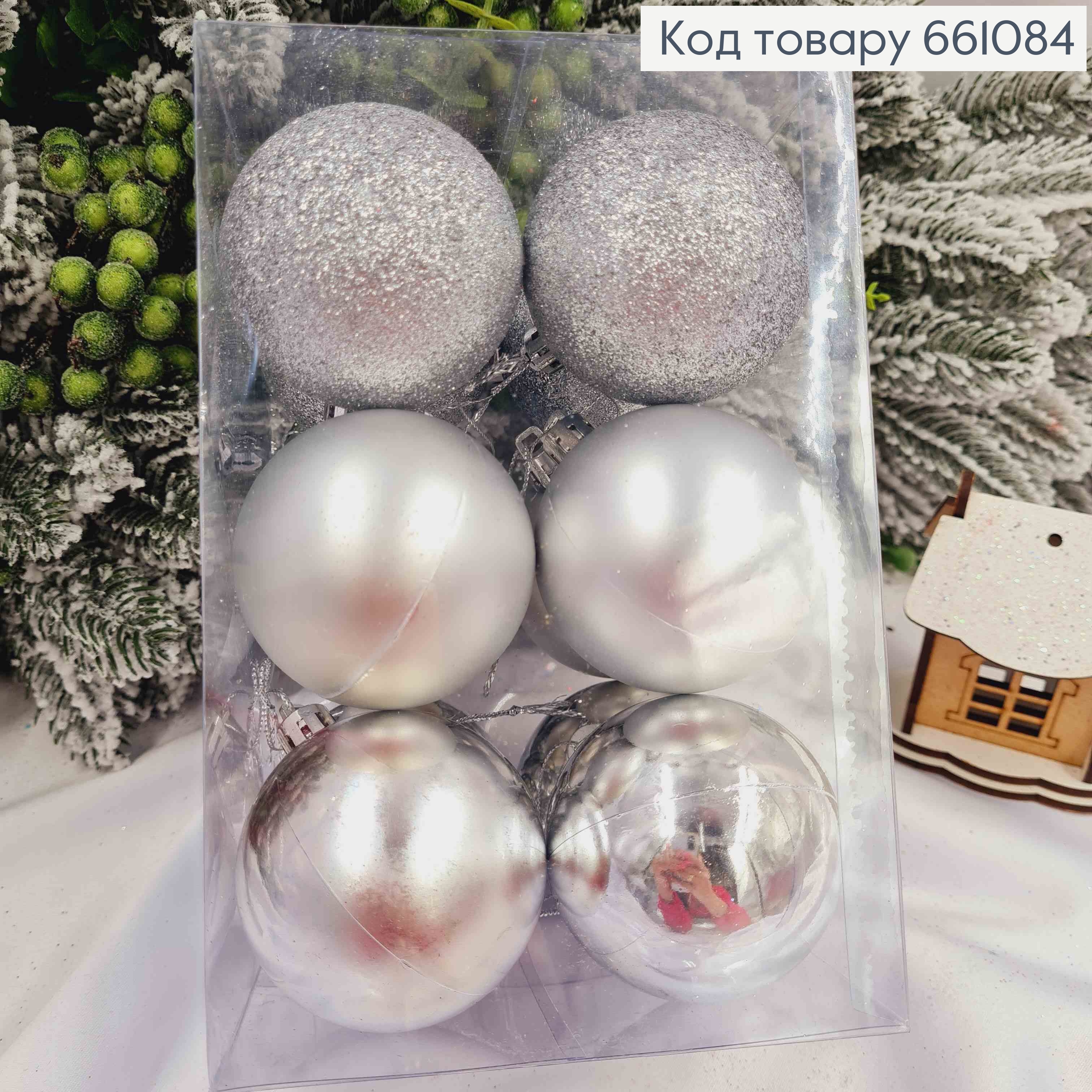 Набір(12шт) іграшок 60мм СРІБНІ, Китай, 12шт/уп, (глітер, матові, глянцеві)