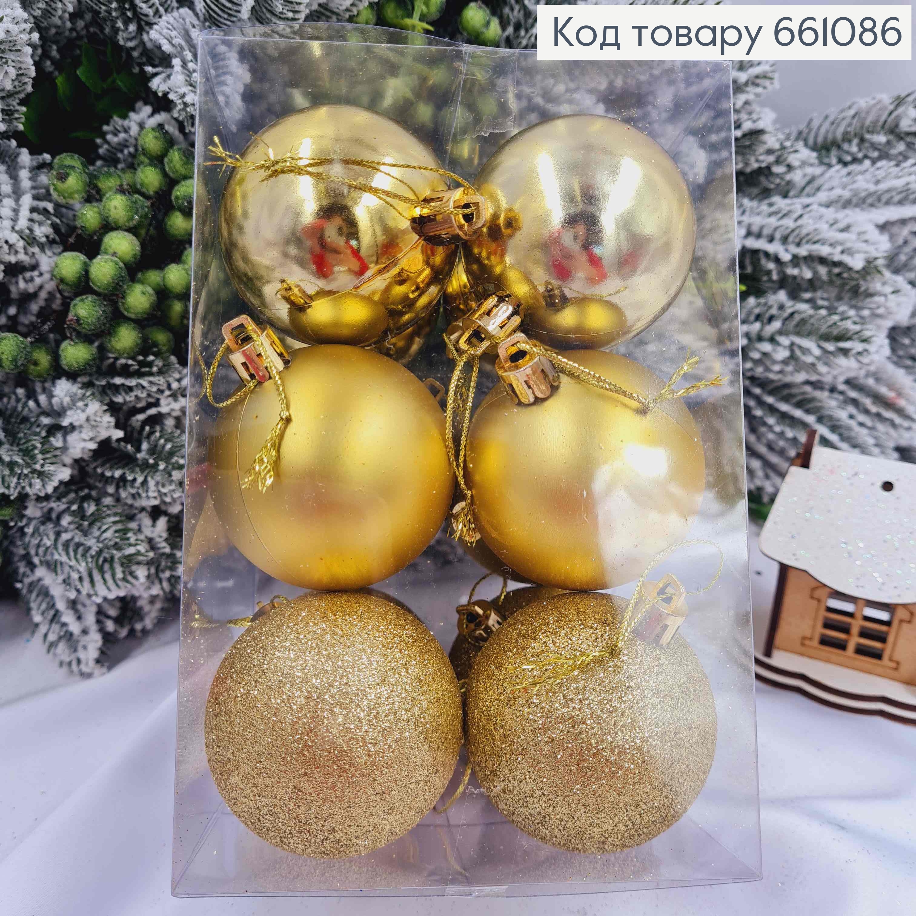 Набір(12шт) іграшок 60мм ЗОЛОТІ, Китай, 12шт/уп, (глітер, матові, глянцеві)