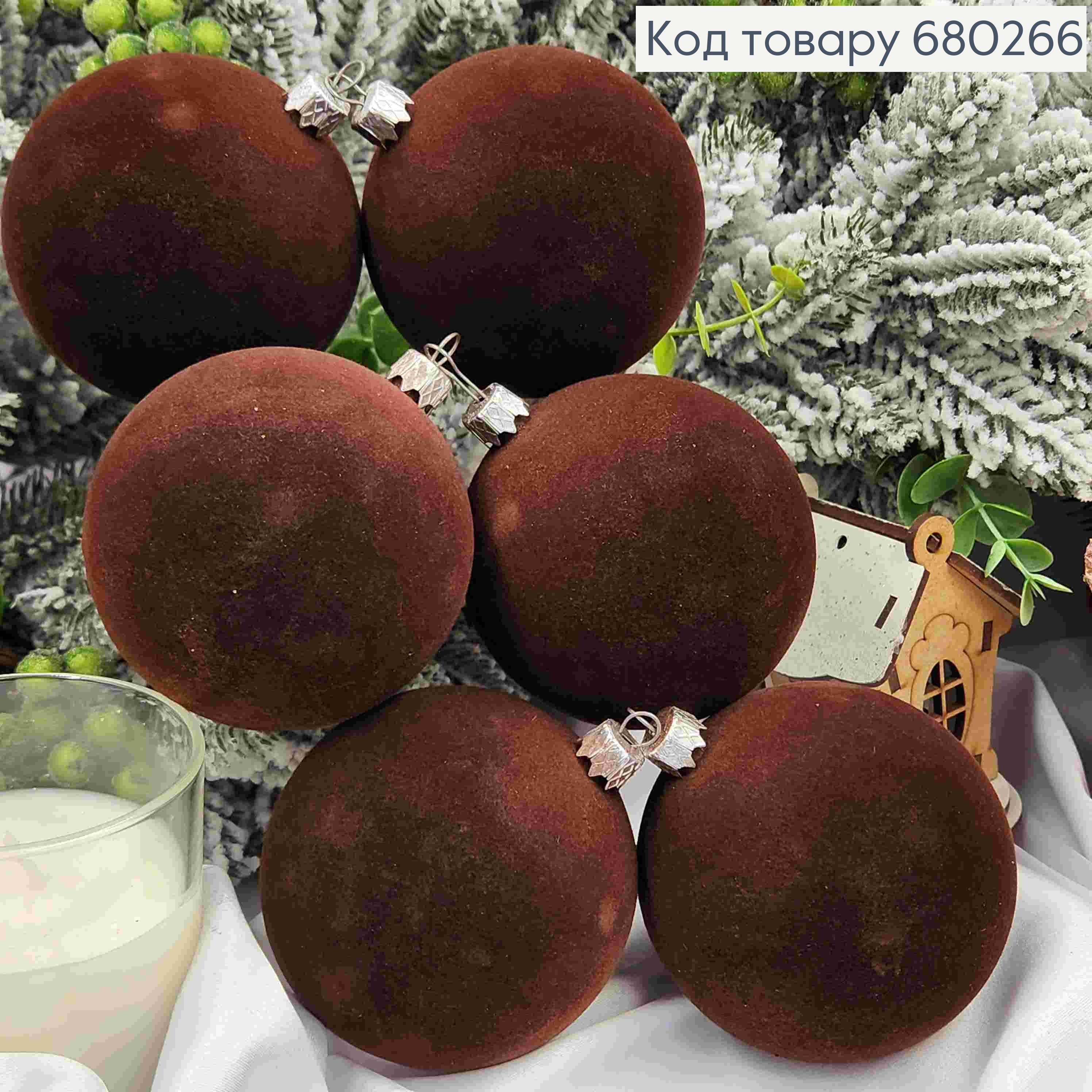 Набір іграшок 80мм (6шт) "ОКСАМИТ", ШОКОЛАДНИЙ колір, новорічні прикраси, пластик, Україна