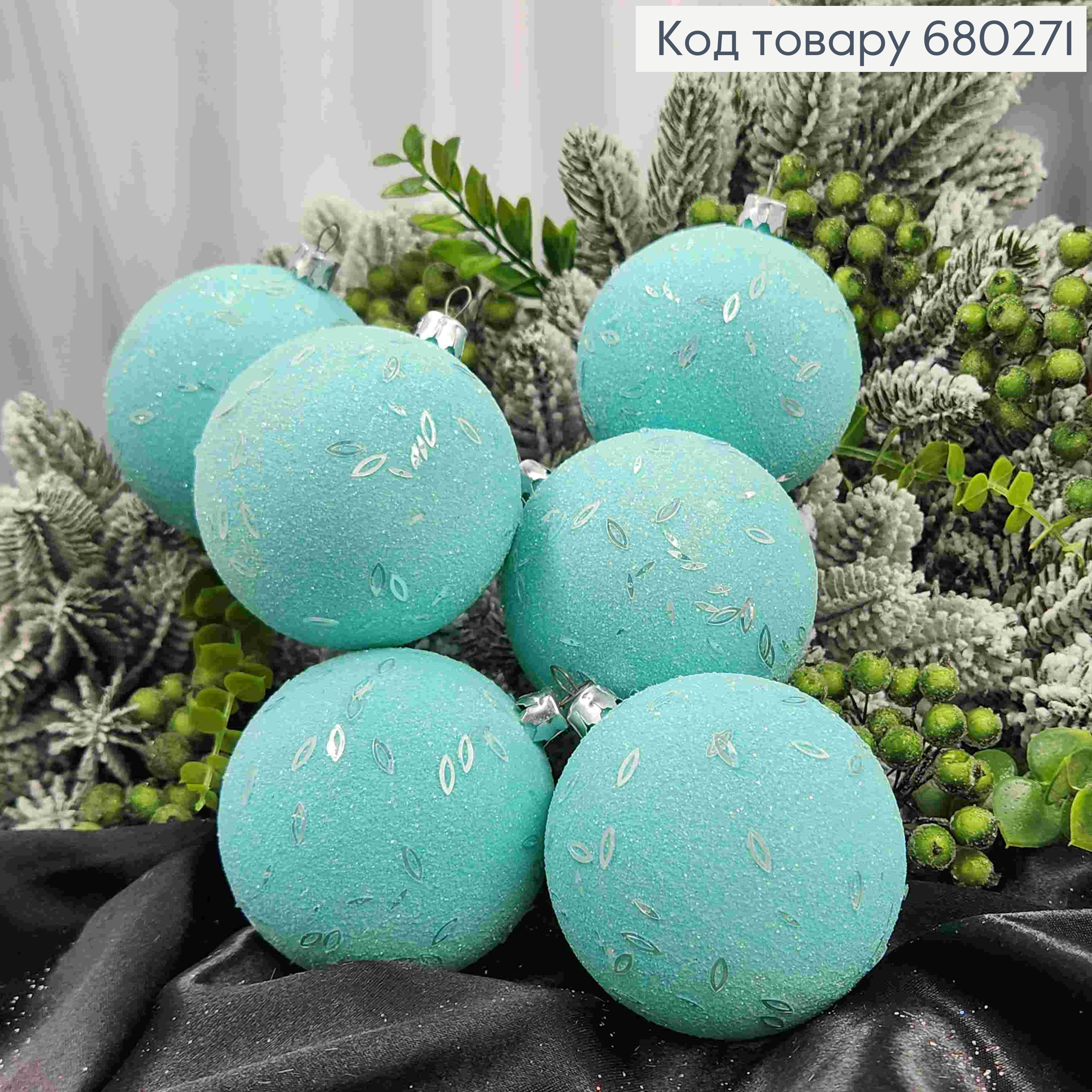 Набір іграшок 80мм (6шт) "ПАСТЕЛЬ+рис", БІРЮЗОВИЙ колір, новорічні прикраси, пластик, Україна