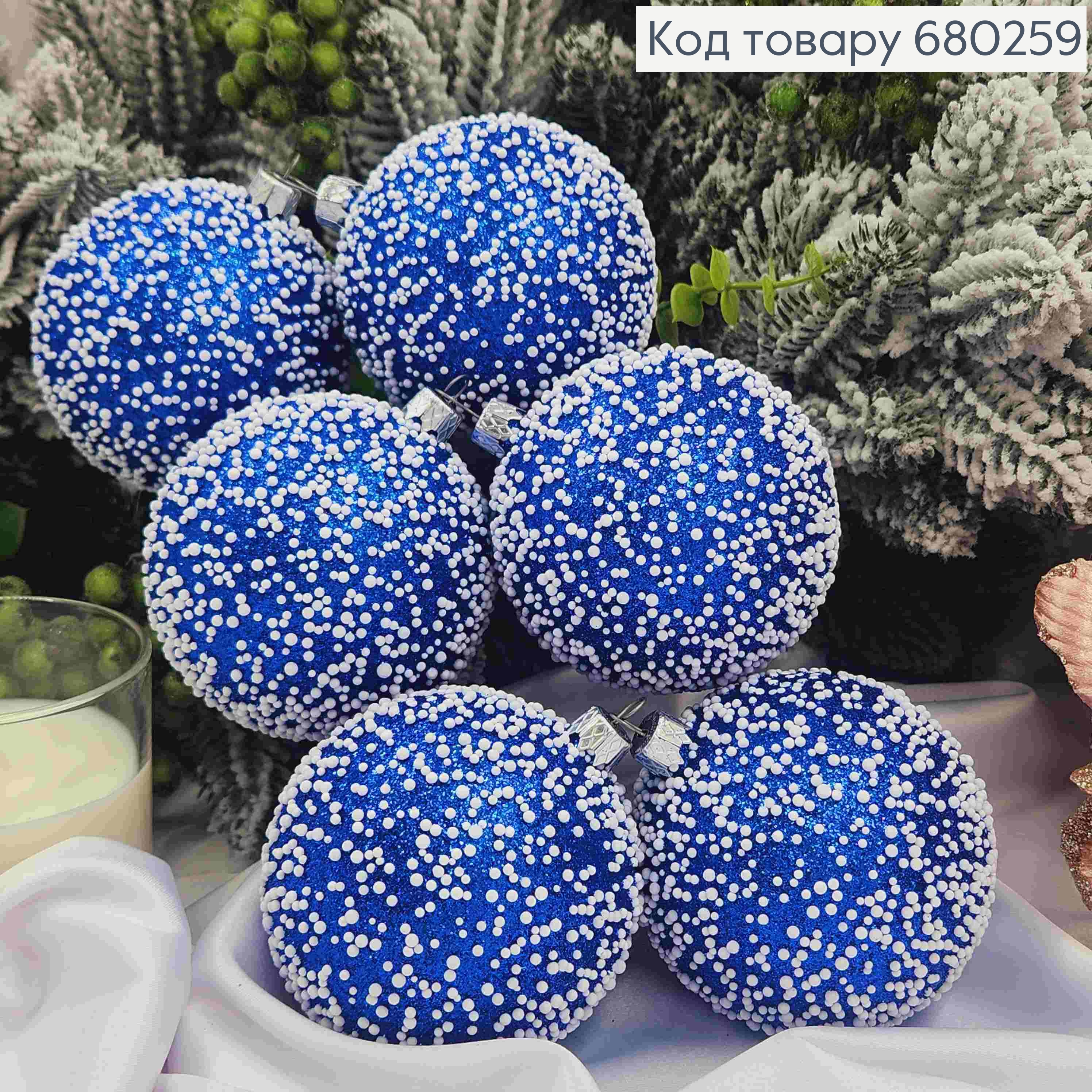Набір іграшок 80мм (6шт) "СНІГОПАД", СИНІЙ колір, новорічні прикраси, пластик, Україна