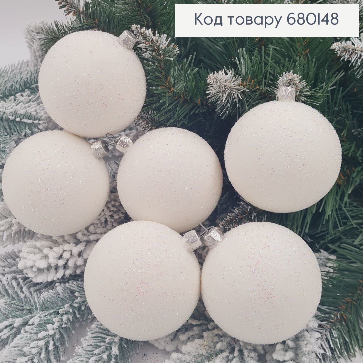 Набір іграшок 80мм (6шт) "ПАСТЕЛЬ+рис", БІЛИЙ колір, новорічні прикраси, пластик, Україна 680275 фото