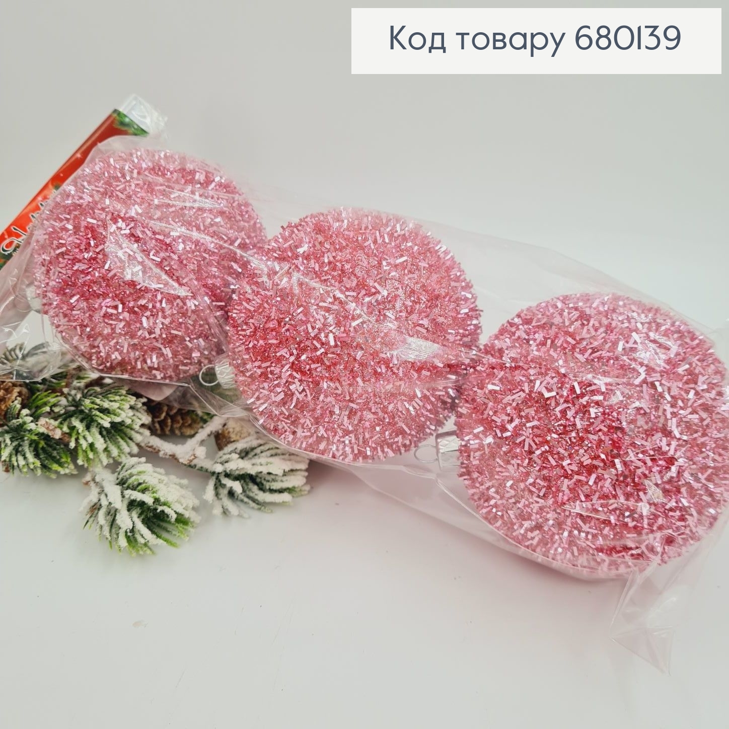 Набір іграшок 80мм (6шт) "ПАСТЕЛЬ +рис", РОЗОВИЙ колір, новорічні прикраси, пластик, Україна 680276 фото