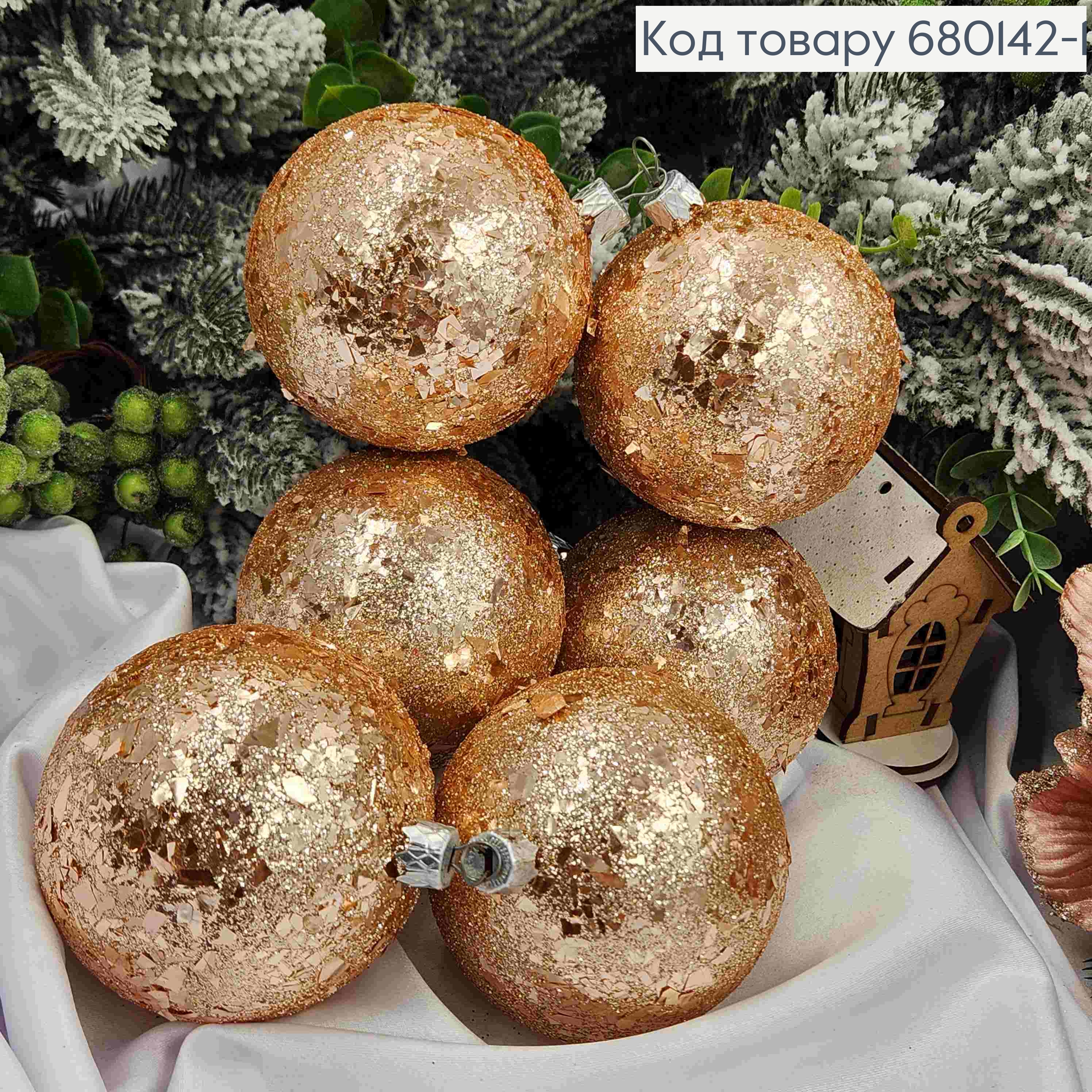 Набір іграшок 80мм (6шт) "ПАСТЕЛЬ+рис", ПЕРСИКОВИЙ  колір, новорічні прикраси, пластик, Україна 680274 фото
