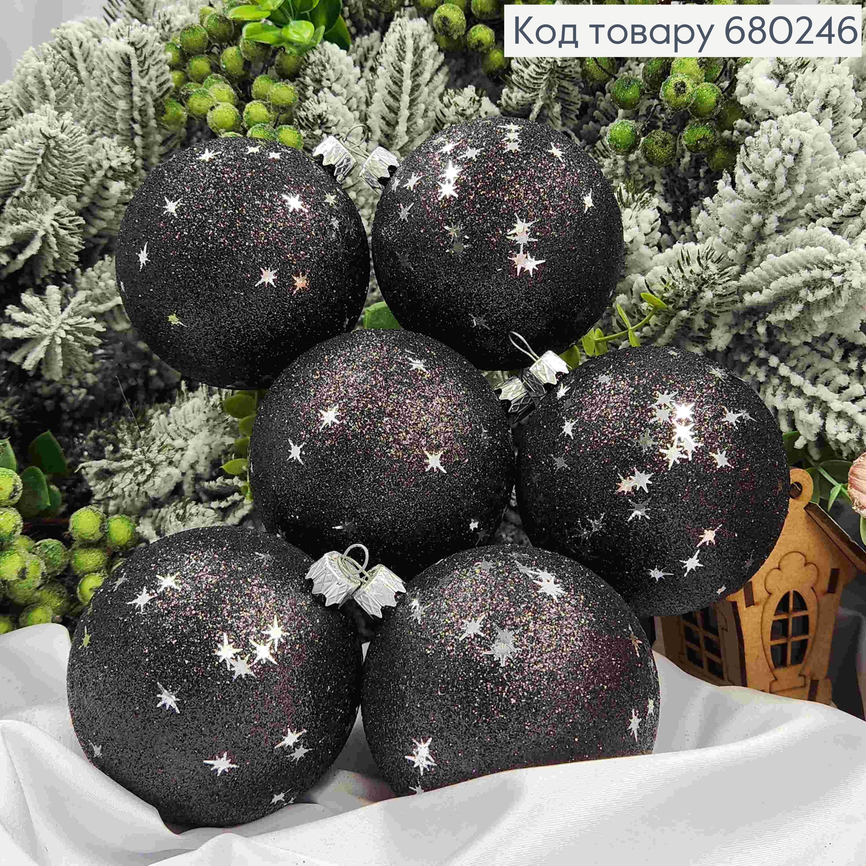 Набір іграшок 80мм "ЗОРЕПАД",ЧОРНА, 6шт/уп, новорічні прикраси, пластикові, Україна