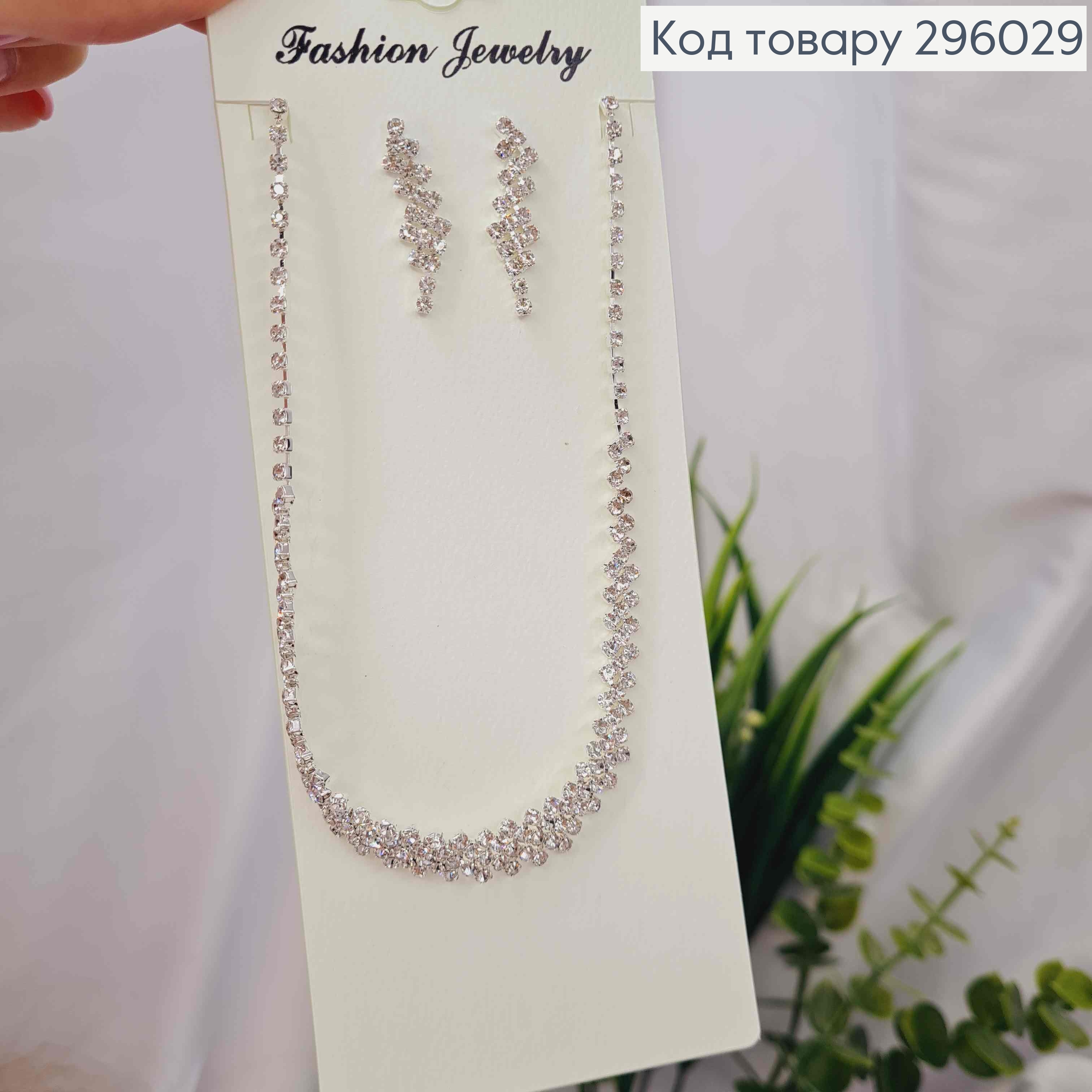 Набір: Кольє та Сережки гвіздки, "Краплинки" в оправі з маленьких Блискучих камінців 296044 фото