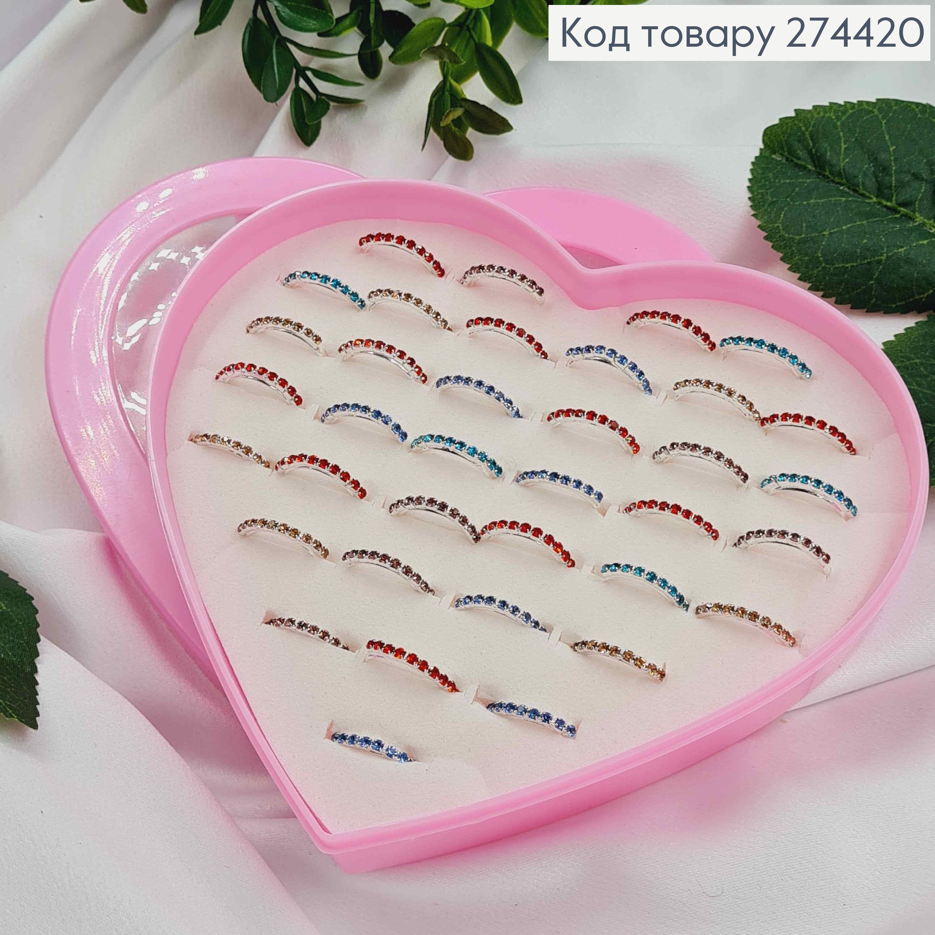 Набір колечок (36шт) "КОЛЬОРОВІ камінці" в асортименті  в коробочці- сердечку 274529 фото