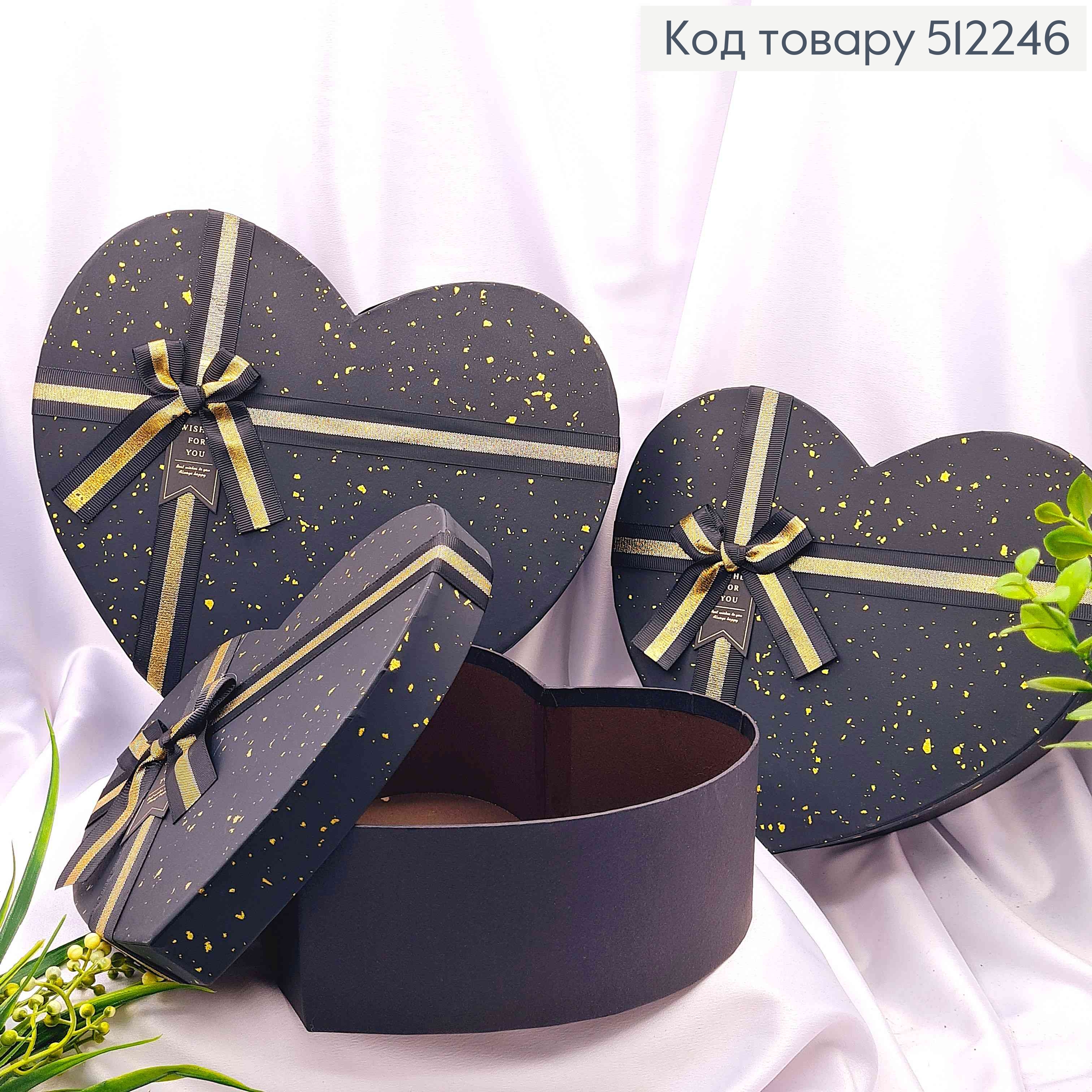 Набір коробок(3шт) "СЕРЦЕ",в плямку з Бантиком, ЧОРНА (30х29х11см, 26х24х10см, 22х21х8,5см)