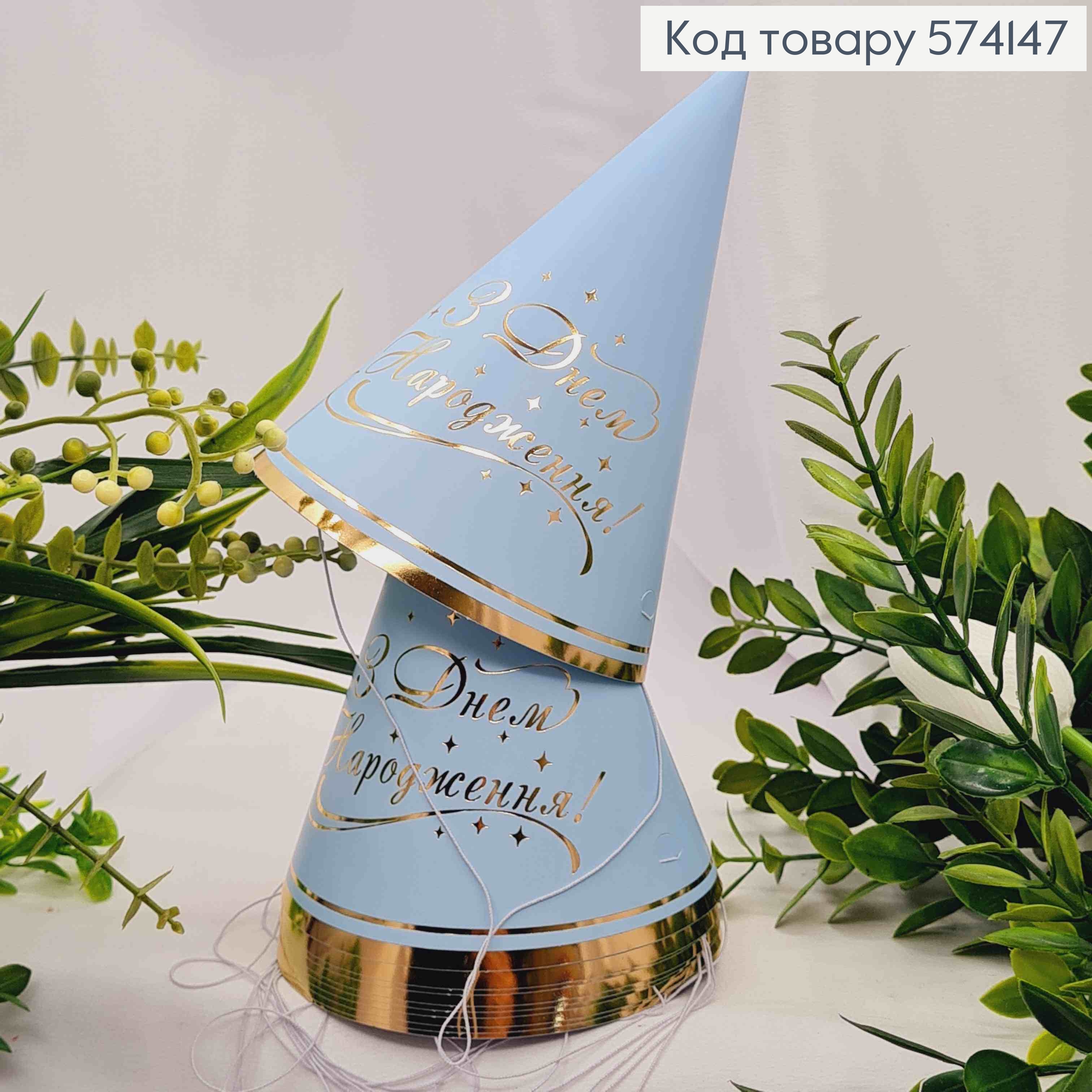 Набор праздничных колпачков, "С Днем Рождения", Голубой цвет с золотой надписью, 10шт/уп.