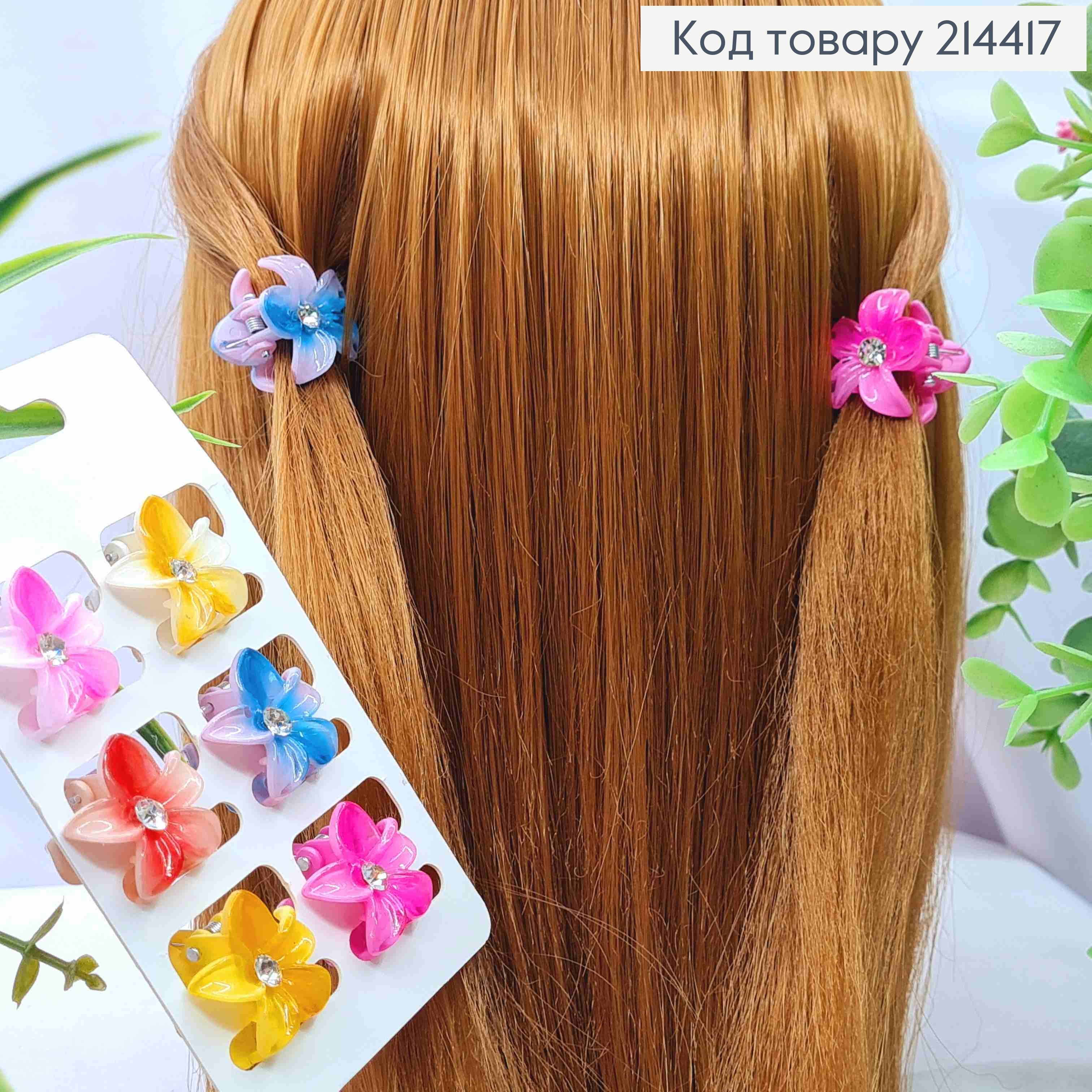 Набір: краб пластик глянцевий, "Квітка" з камінчиком, 6шт/уп, розм 4см, Яскраві кольори в асорт.