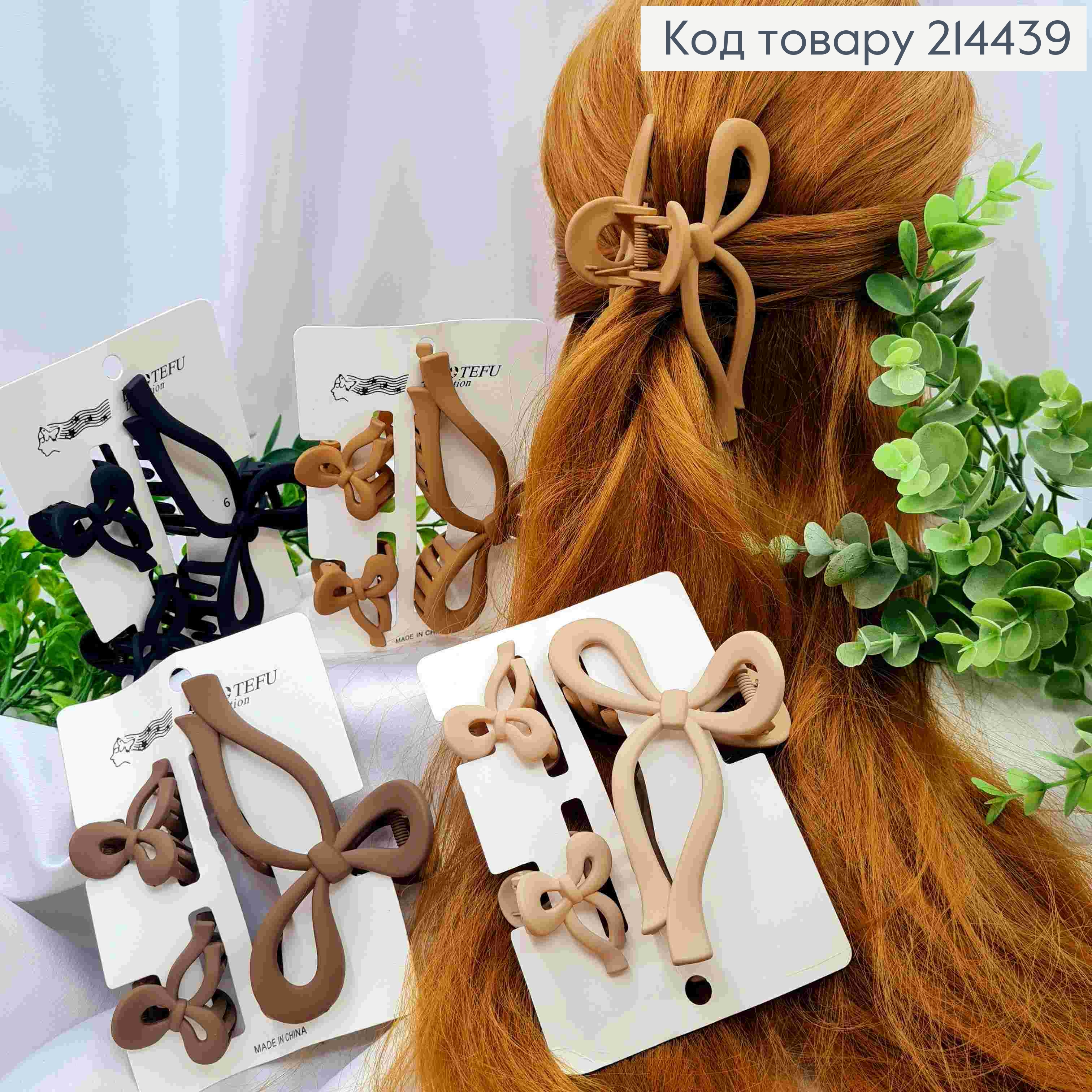 Набір: краб пластик матовий (3шт/уп), "БАНТИК" , розм 11см; 4см, Пастеьні кольори в асортименті