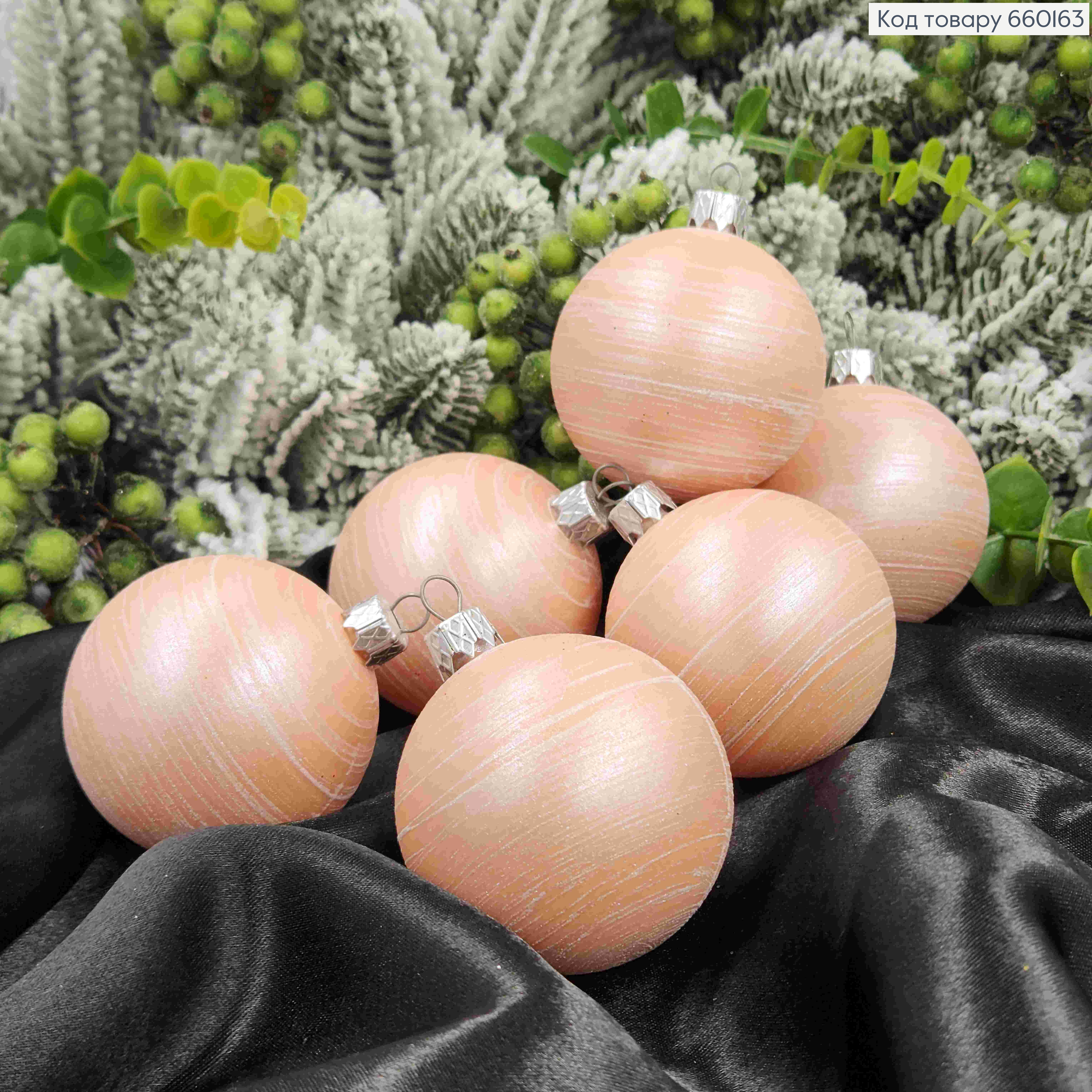 Набір куль(6шт) 60 мм завірюха, колір ПЕРСИК, новорічна прикраса, пластик, Україна