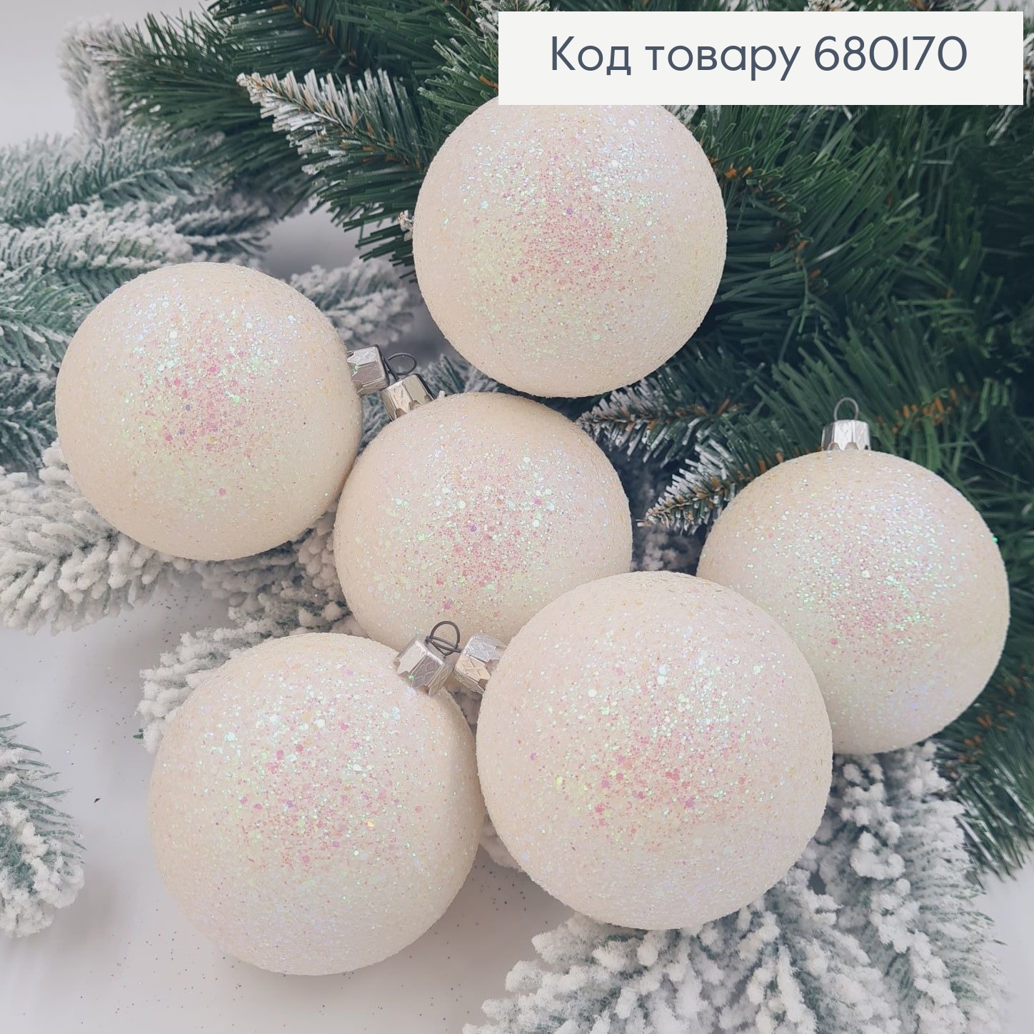 Набір іграшок 80мм (6шт) "ПАСТЕЛЬ+рис", БІЛИЙ колір, новорічні прикраси, пластик, Україна 680275 фото