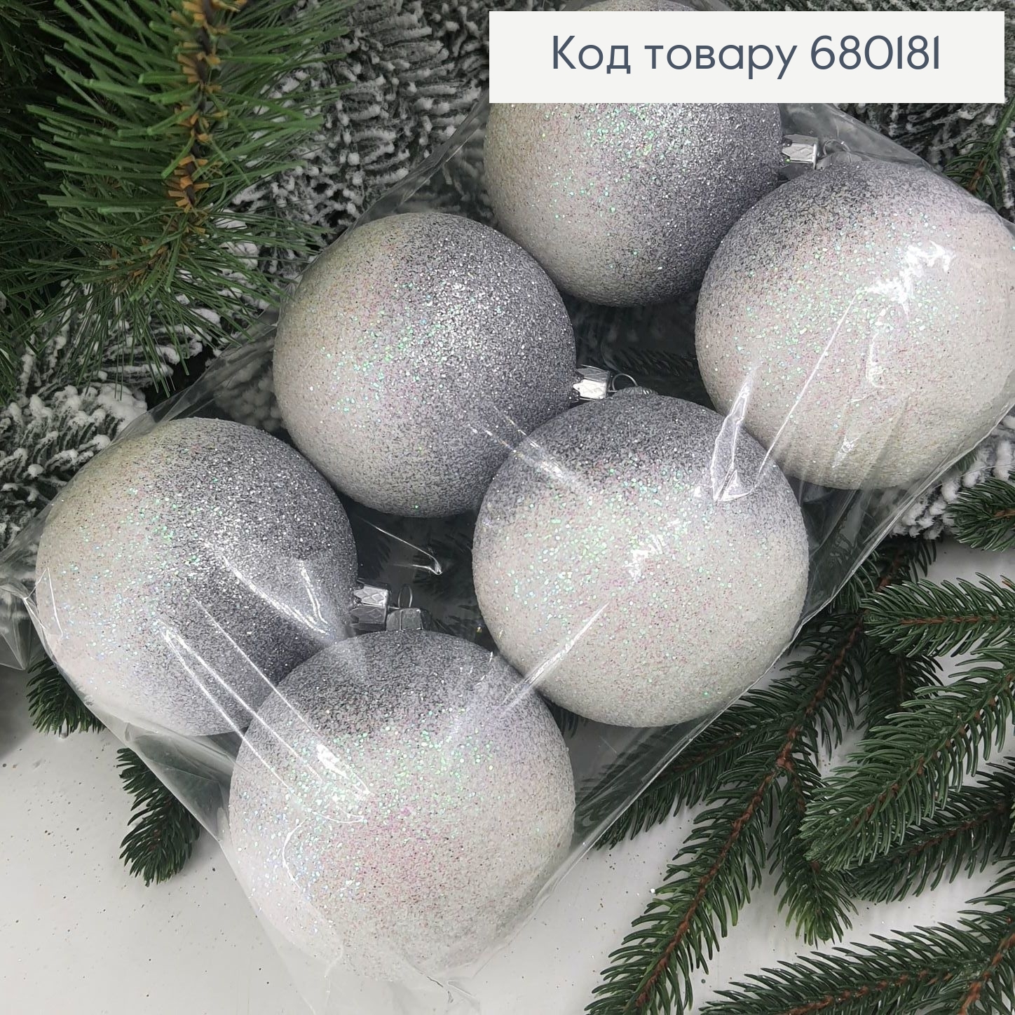 Набір іграшок 80мм (6шт) "ПАСТЕЛЬ+рис", БІЛИЙ колір, новорічні прикраси, пластик, Україна 680275 фото