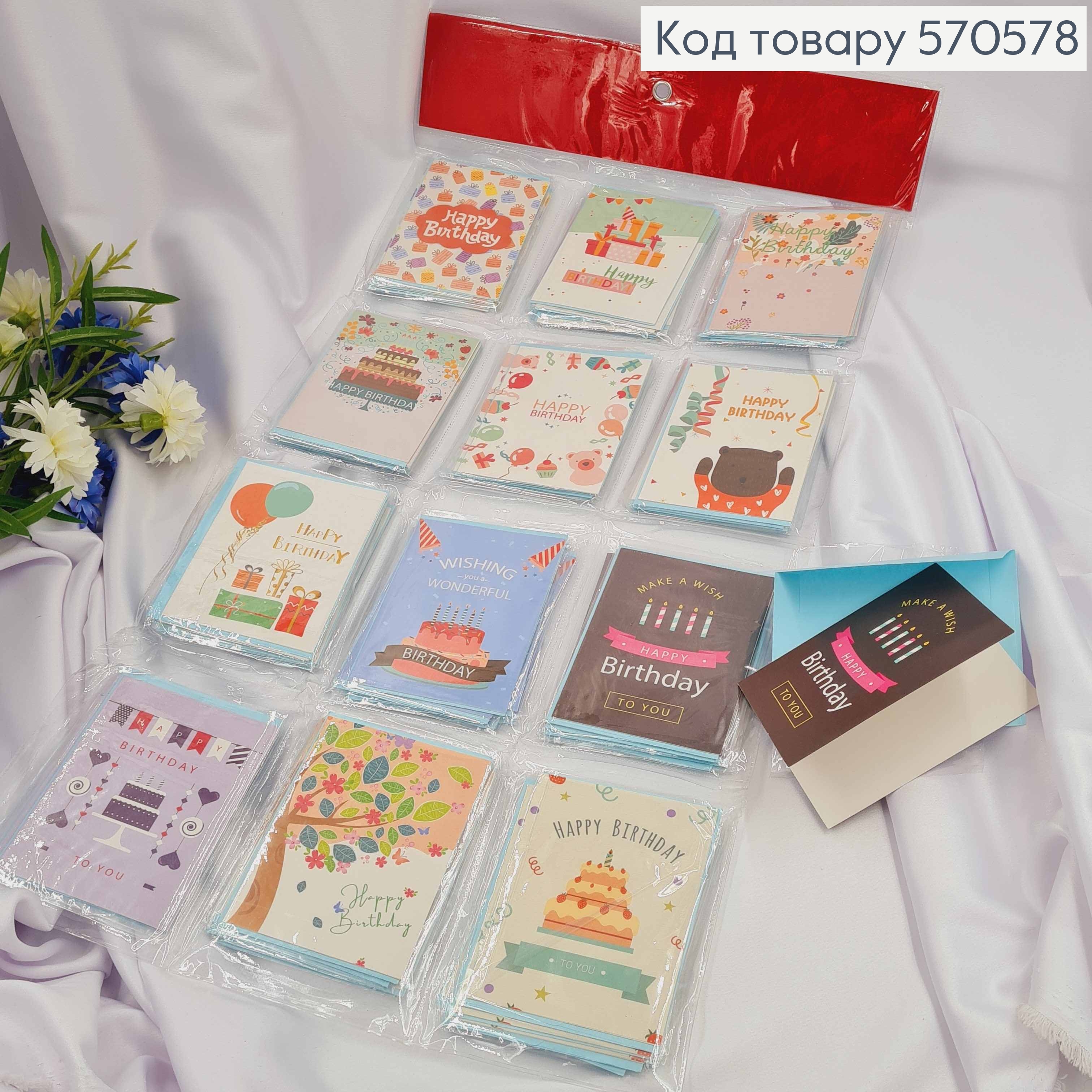 Набір міні листівок "HAPPY BIRTHDAY, 96шт/уп в асортименті, 8,5*11 см, Україна