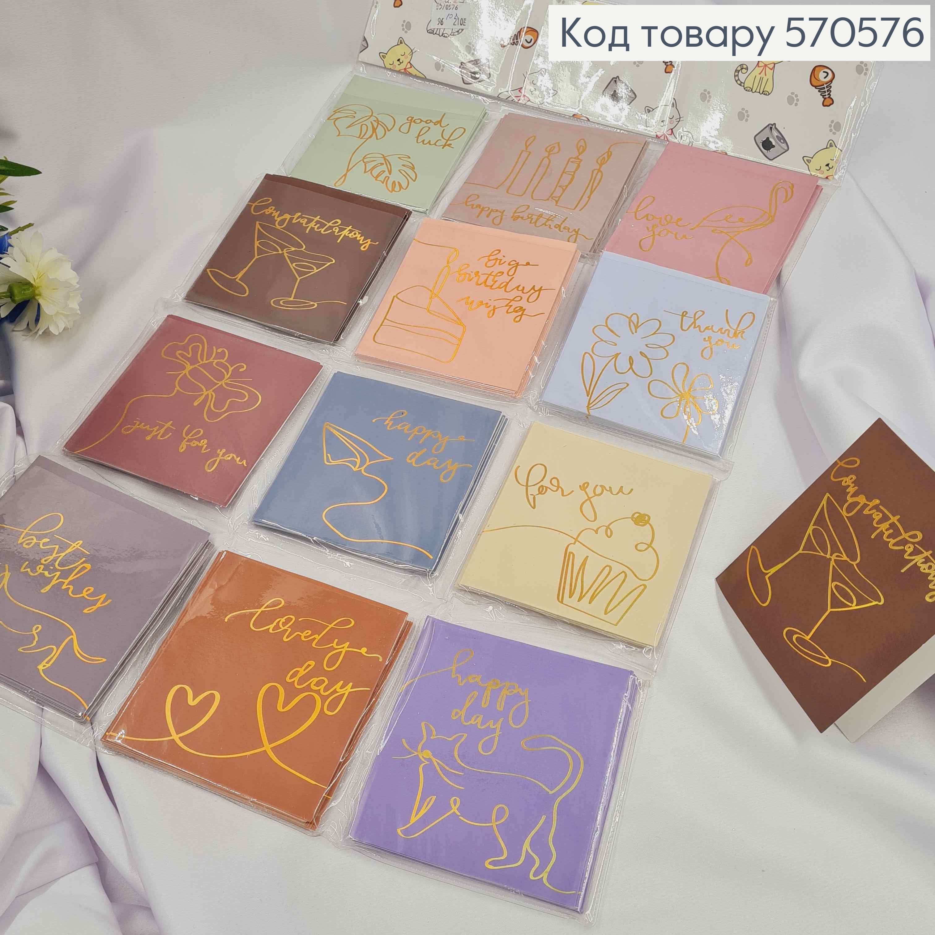 Набір міні листівок, з написами Золотого кольору, 96шт/уп в асортименті, 9*10 см, Україна