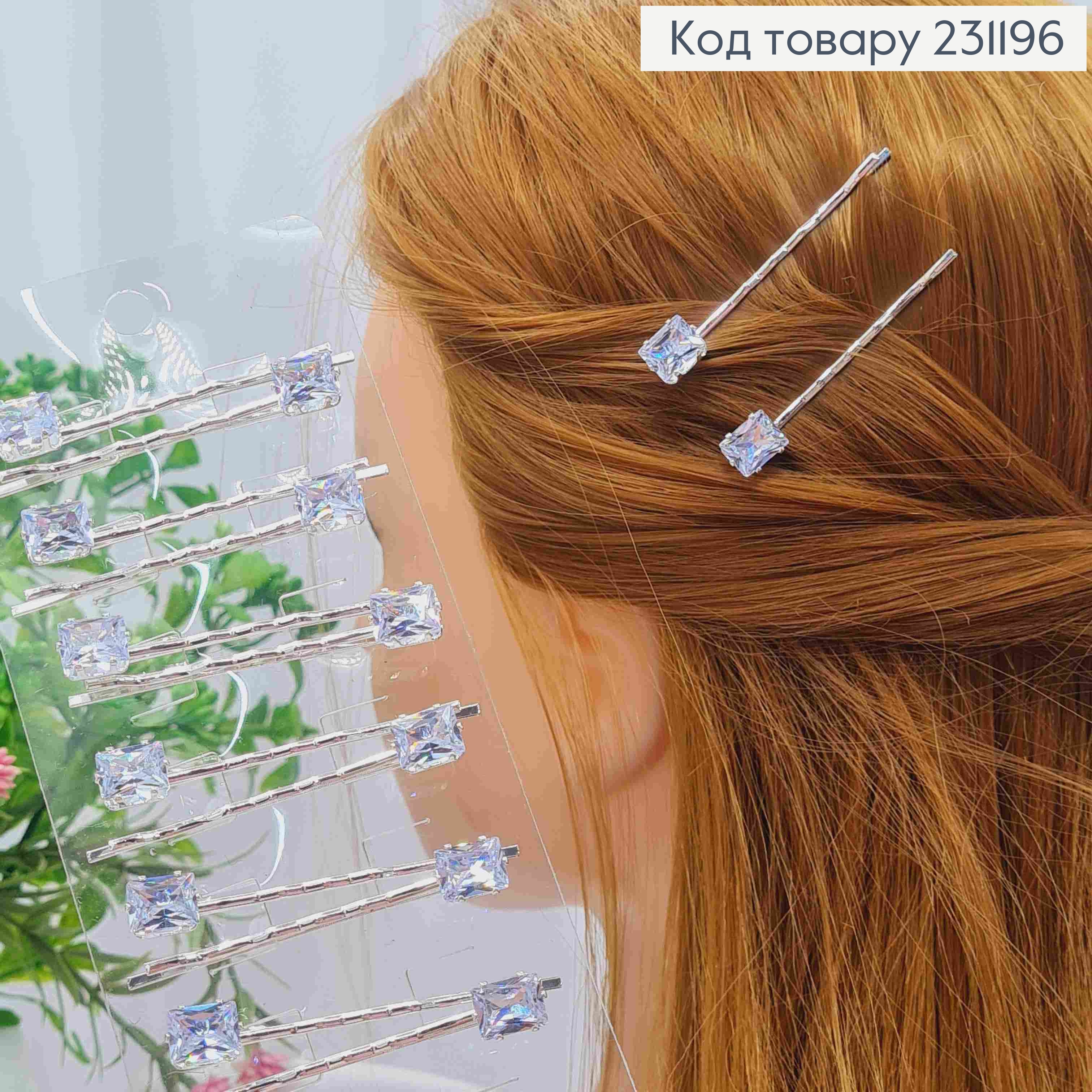 Набір невидимок (2шт), з квадратним Блискучим каменем, 5см, Срібного кольору 231196 фото