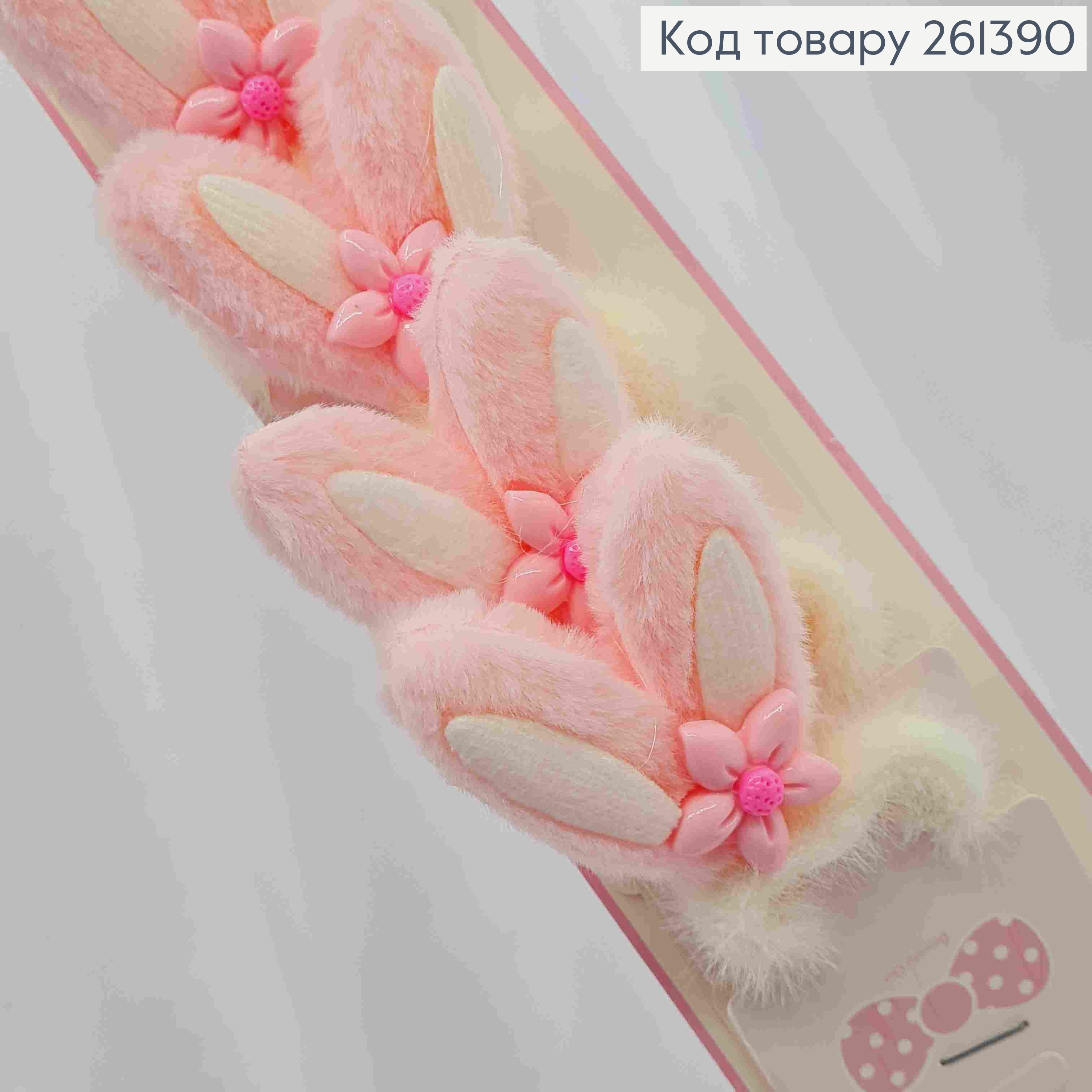 Набір резинок (10шт) "Вушка Зайченяти" з Квіткою, Рожевого кольору, резинка 4см, вуха 5см 261390 фото