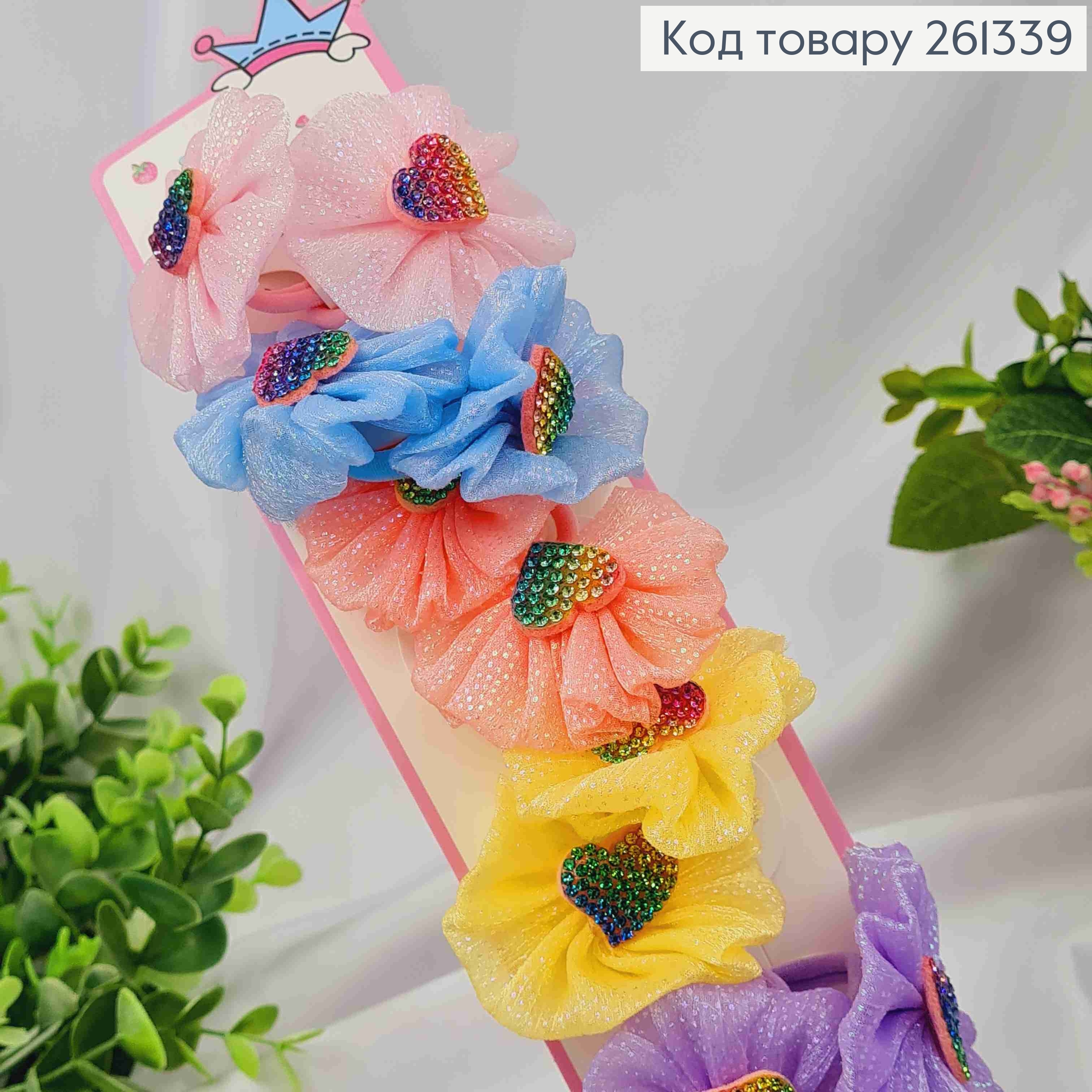 Набір резинок (20шт), БАНТИК + СЕРЦЕ в стразах, Яскраві кольори, резинка 3см, бантик 5см