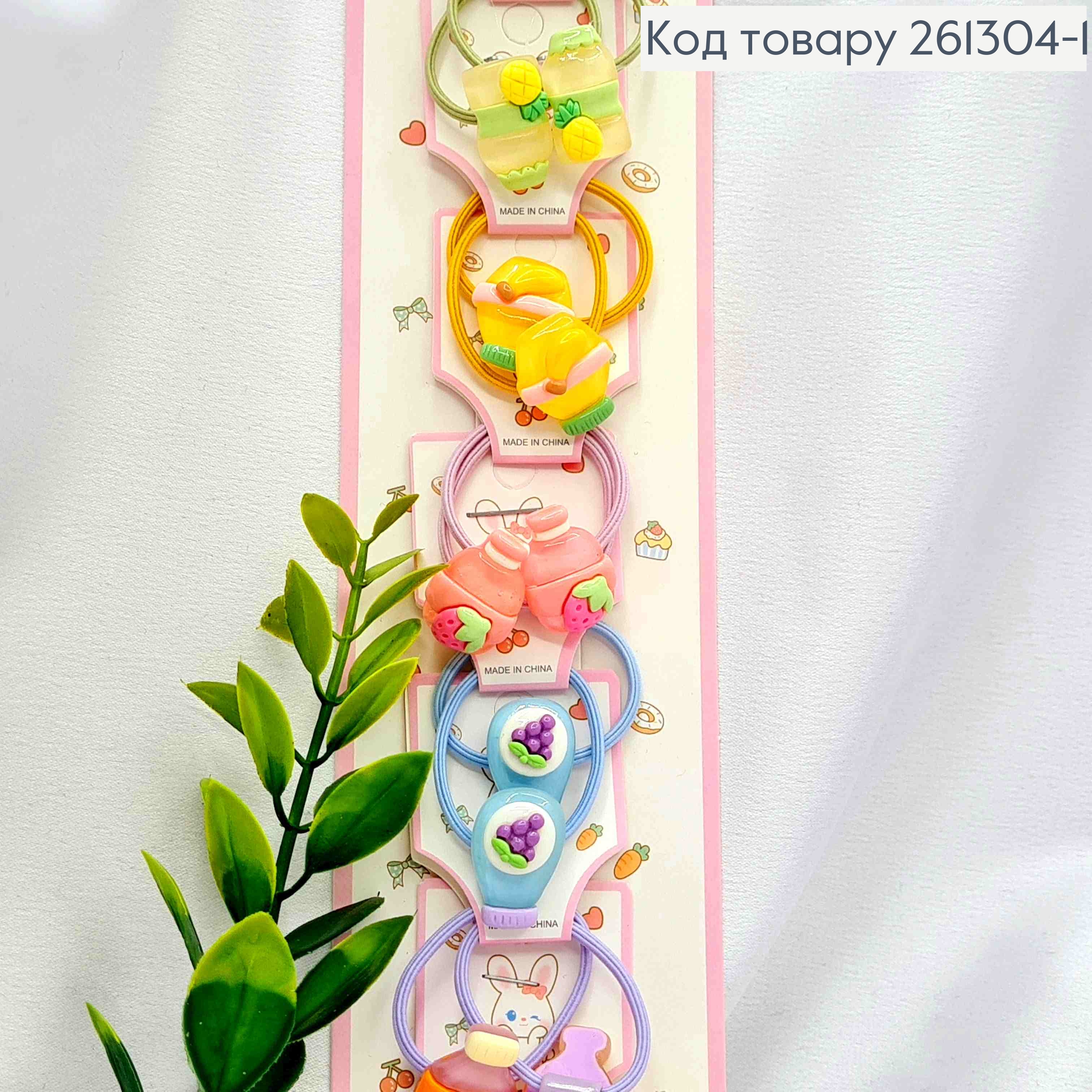 Набір резинок (20шт), ФРУКТОВІ ПЛЯШЕЧКИ, яскраві кольори, резинка 4см, фігурки 2,5см