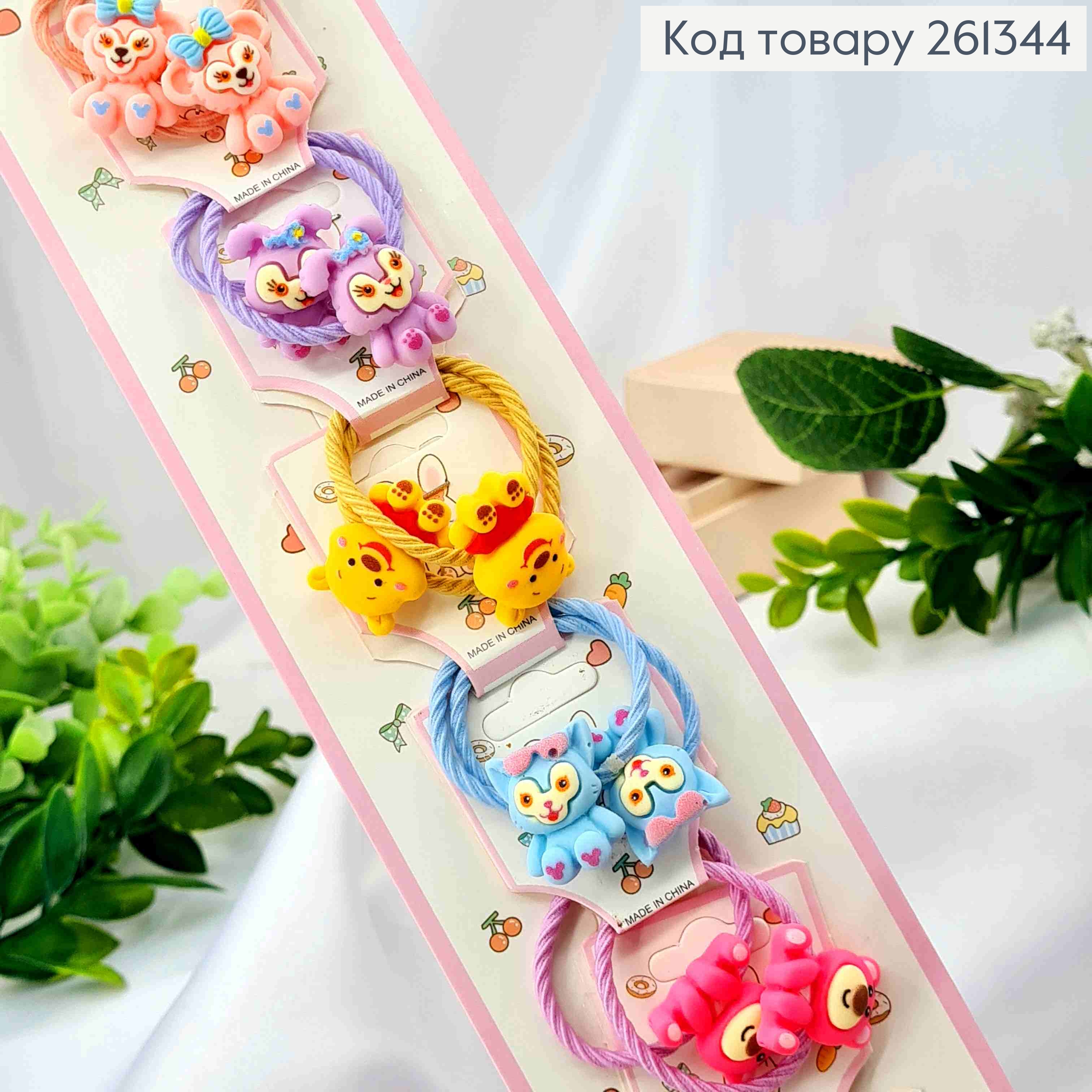 Набір резинок (20шт) "Тваринки" з бантиком, Пастельні кольори, резинка 3см, тваринки 2,5см 261387 фото