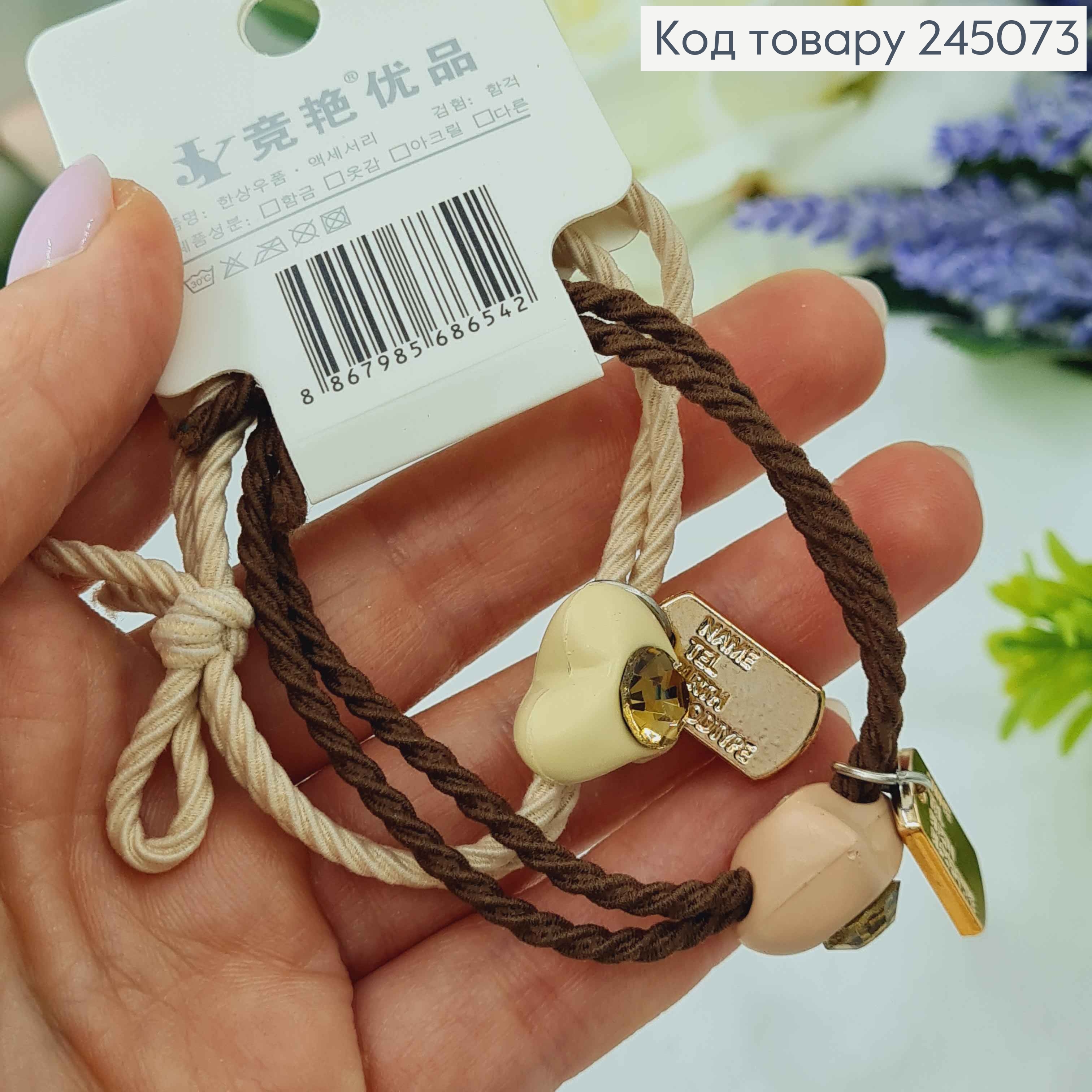 Набір резинок, 2шт.Коричнева/Молочна, з бусинками сердечками