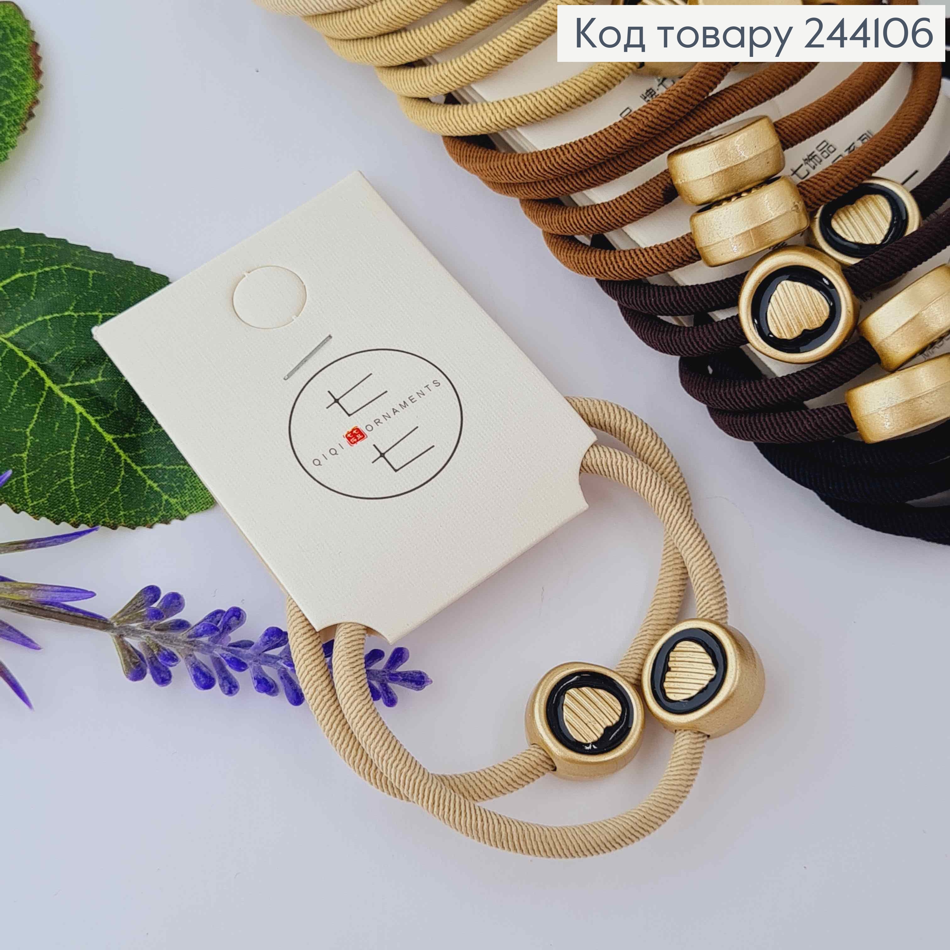 Набір резинок (5,5см) 2шт "Серце в кружечку металік", коричневі тони в асортименті