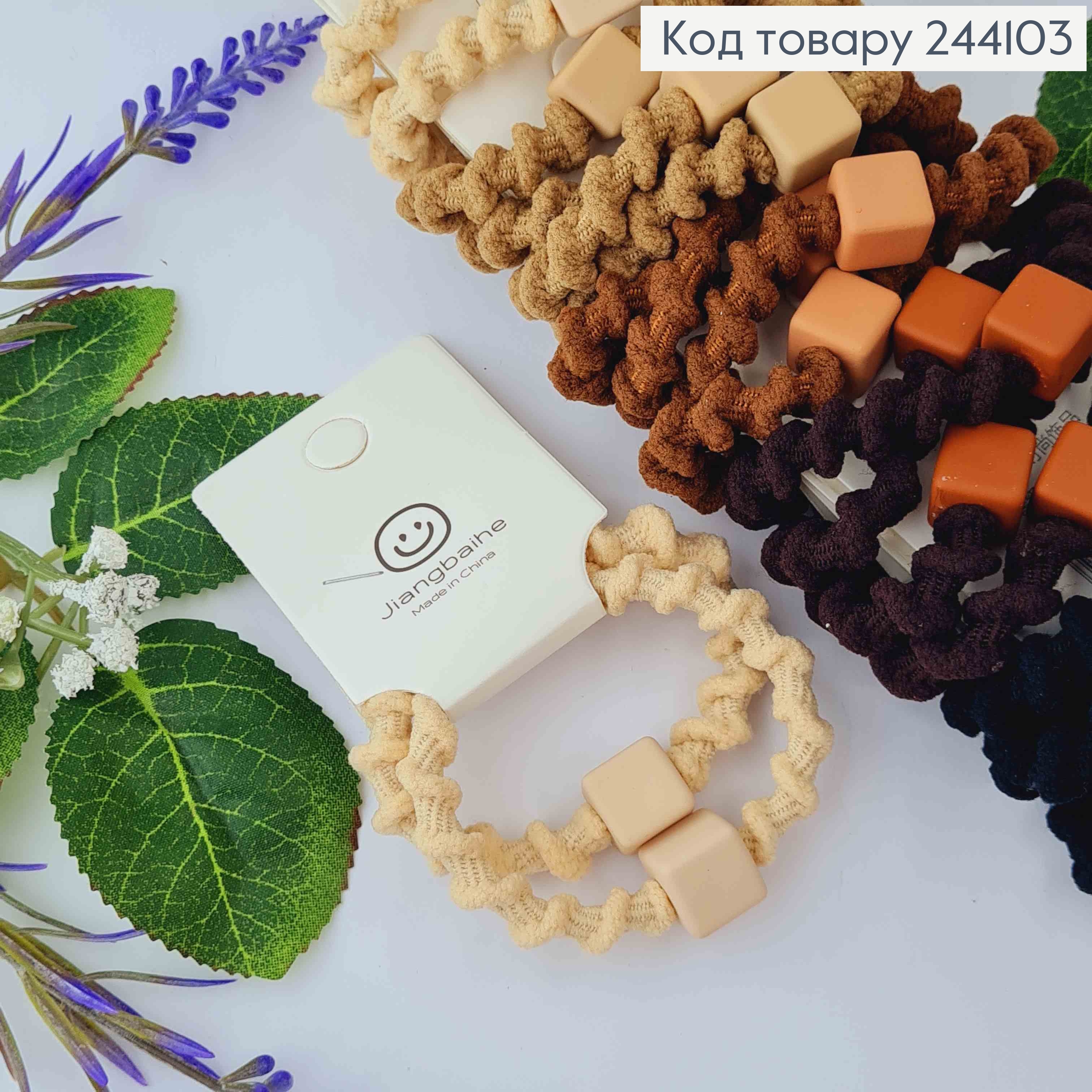 Набір резинок (5,5см) 2шт з кубиками 1,3см "Матові", коричневі тони в асортименті