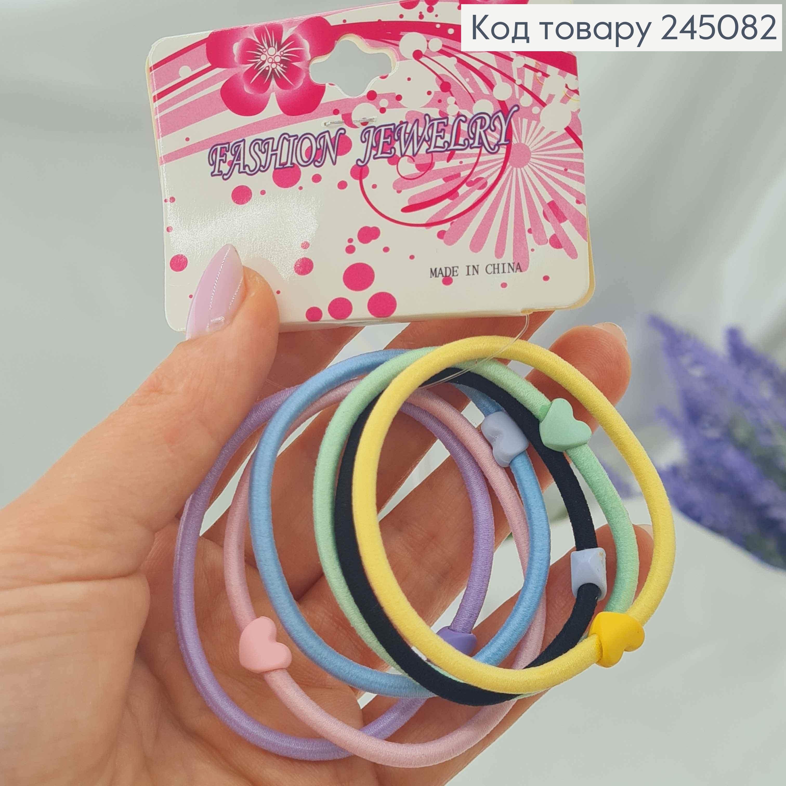 Набір резинок, 5шт. кольори в асорт., з бусинкою сердечком