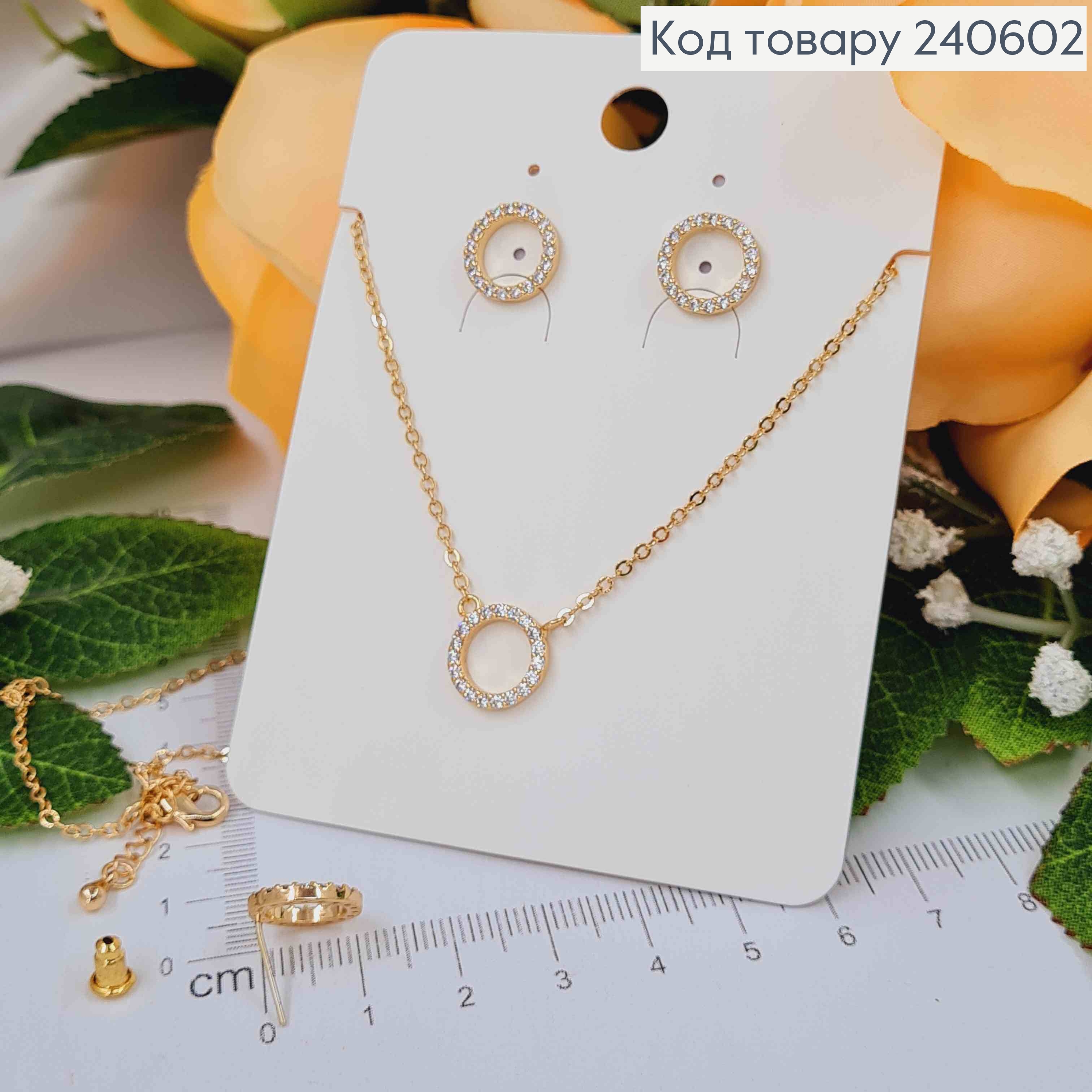 Набір, Сережки гвоздики та Підвіска ланцюжок 45см, Кільця в камінцях.