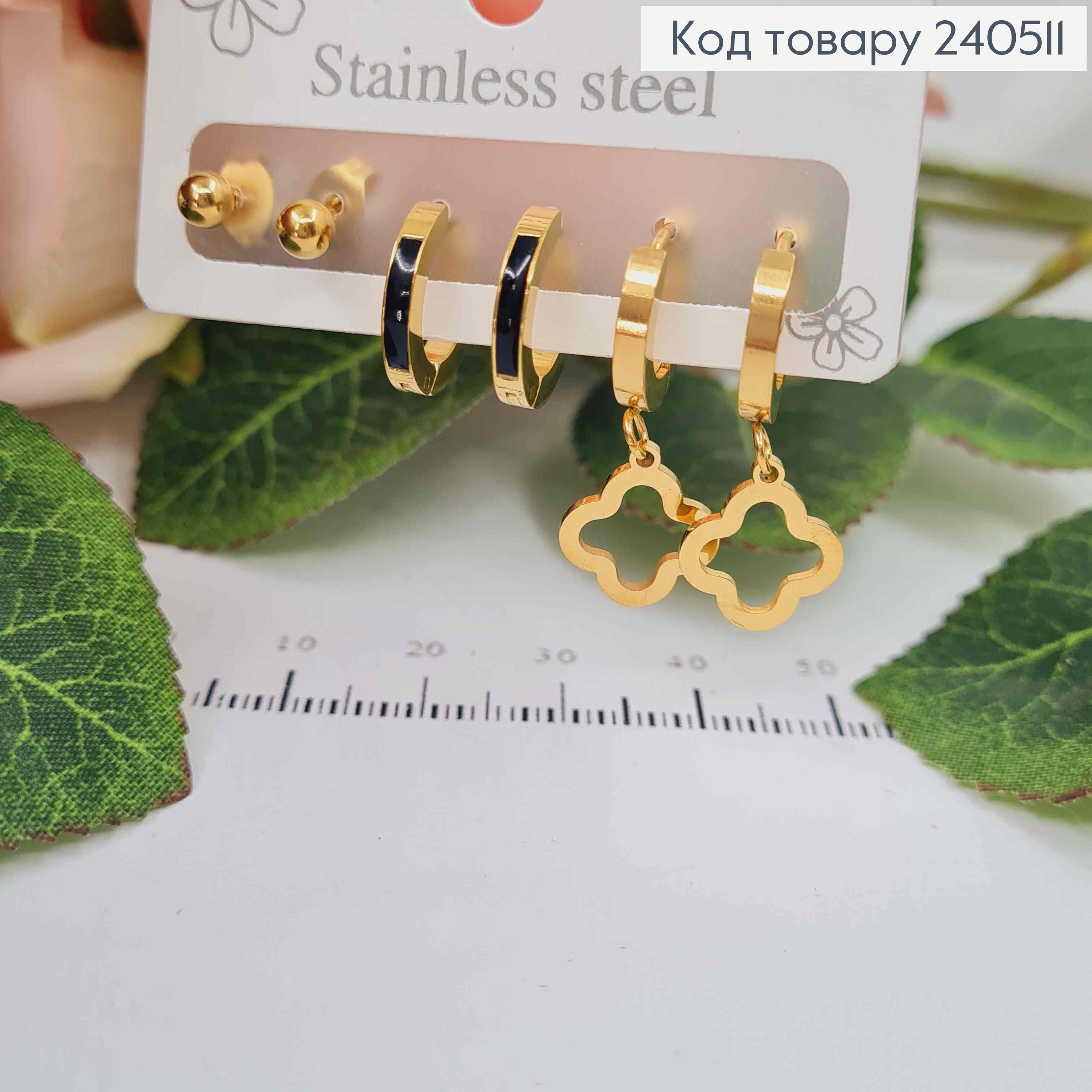 Набір сережок(3пари) золотого кольору, "Van Cleef", сталь Stainless Steel