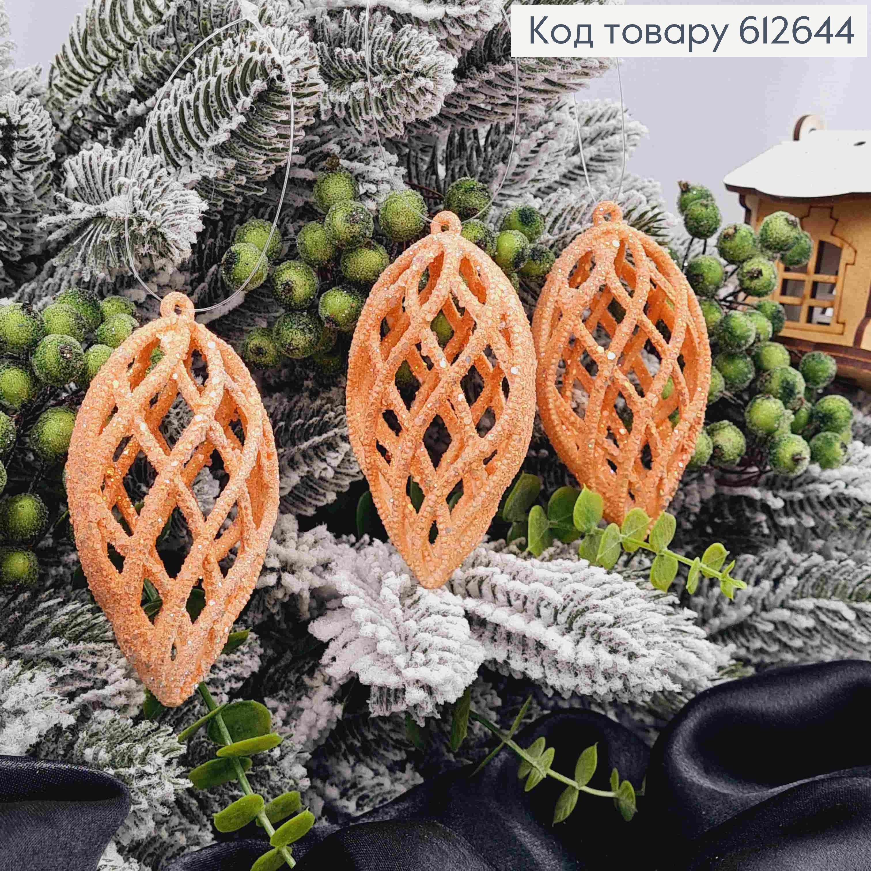 Набір ШИШОК (3шт) ПЕРСИКОВИХ 9,*4,5см, новорічні прикраси, пластикові.Україна