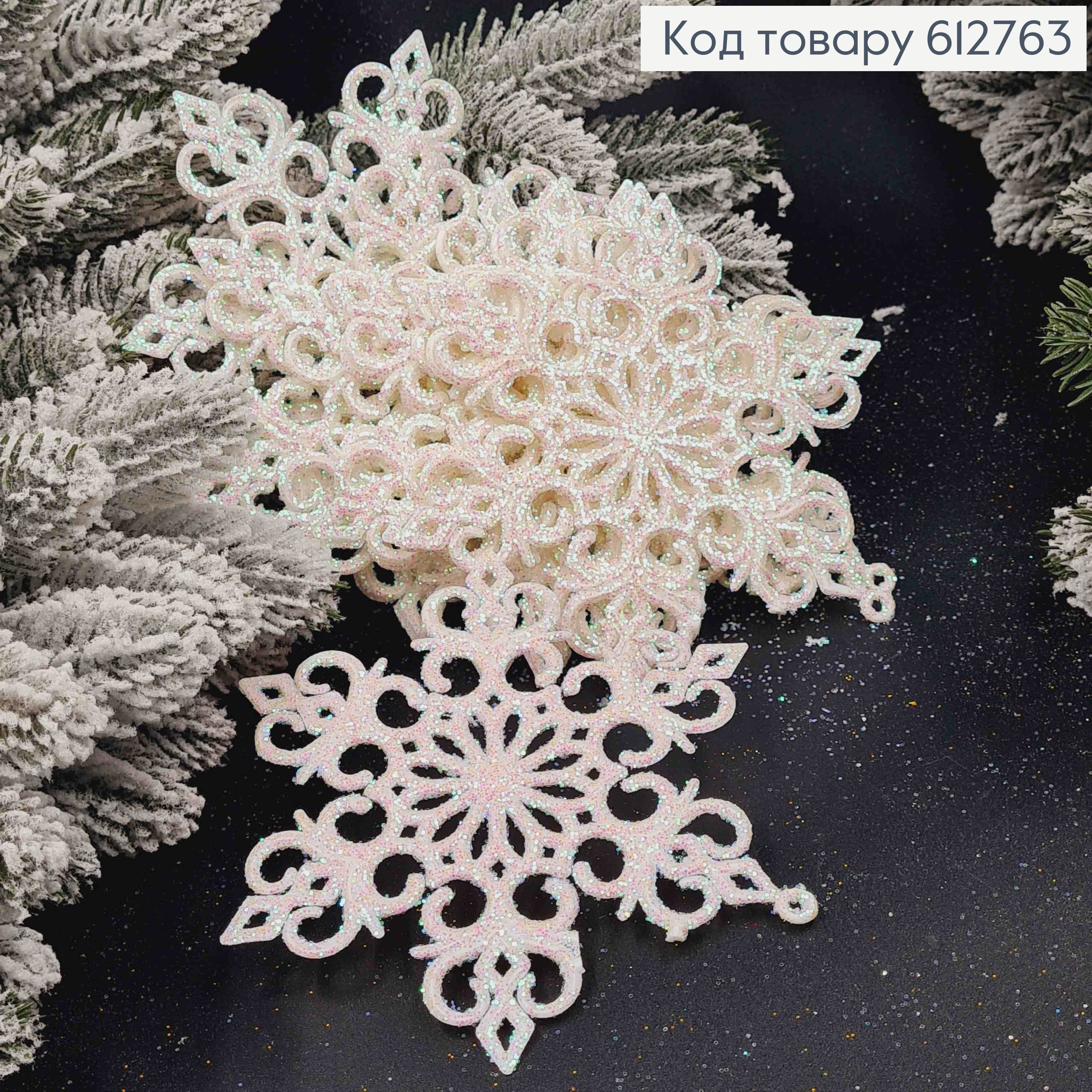 Новорічна фігура, набір Сніжинок,  блиск, колір АЙВОРІ(БІЛИЙ), 10шт/уп, 10,5см, Україна 612605 фото
