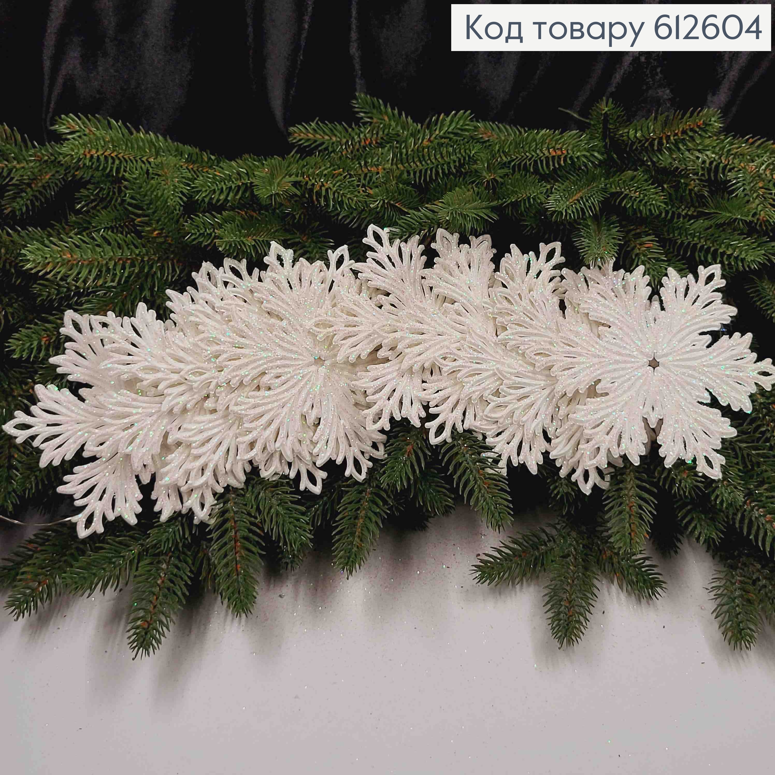Набір  Сніжинок,  блиск, БІЛИЙ колір, 10шт/уп, 13см діаметр,  новорічні прикраси пластикові,Україна 612763 фото