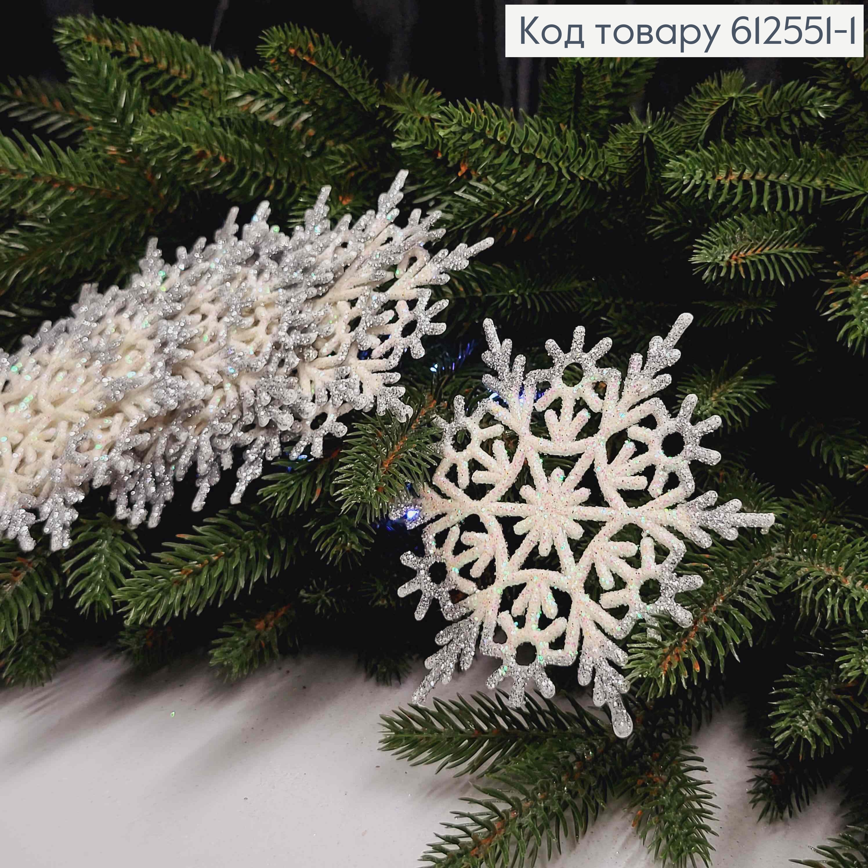 Новорічна фігура, набір Сніжинок, блиск, колір БІЛИЙ+СРІБЛО, 10шт/уп, 12см, Україна