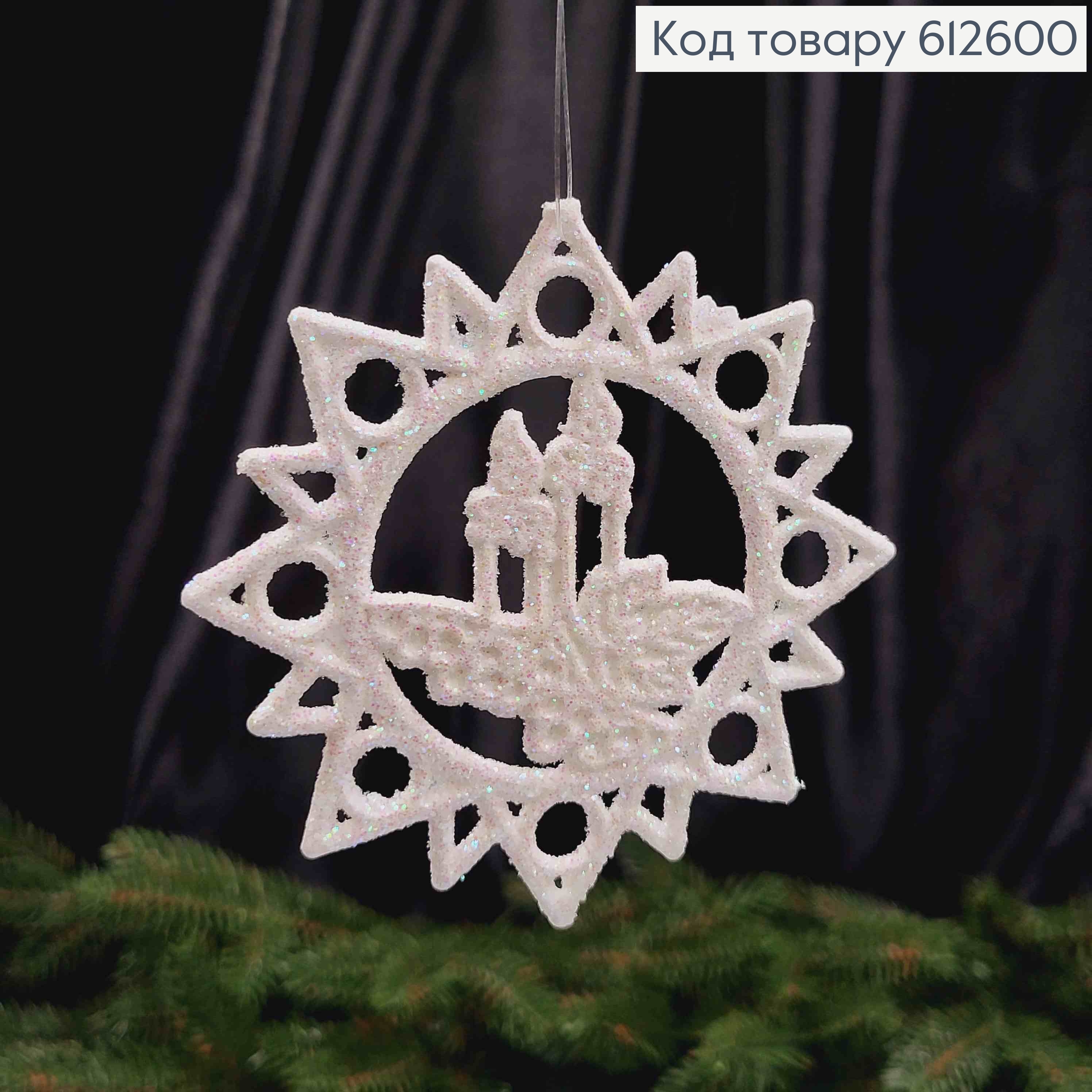 Ялинкова прикраса МЕТЕЛИК на заколці, Білого кольору+Блиск, 21*17см 620761 фото