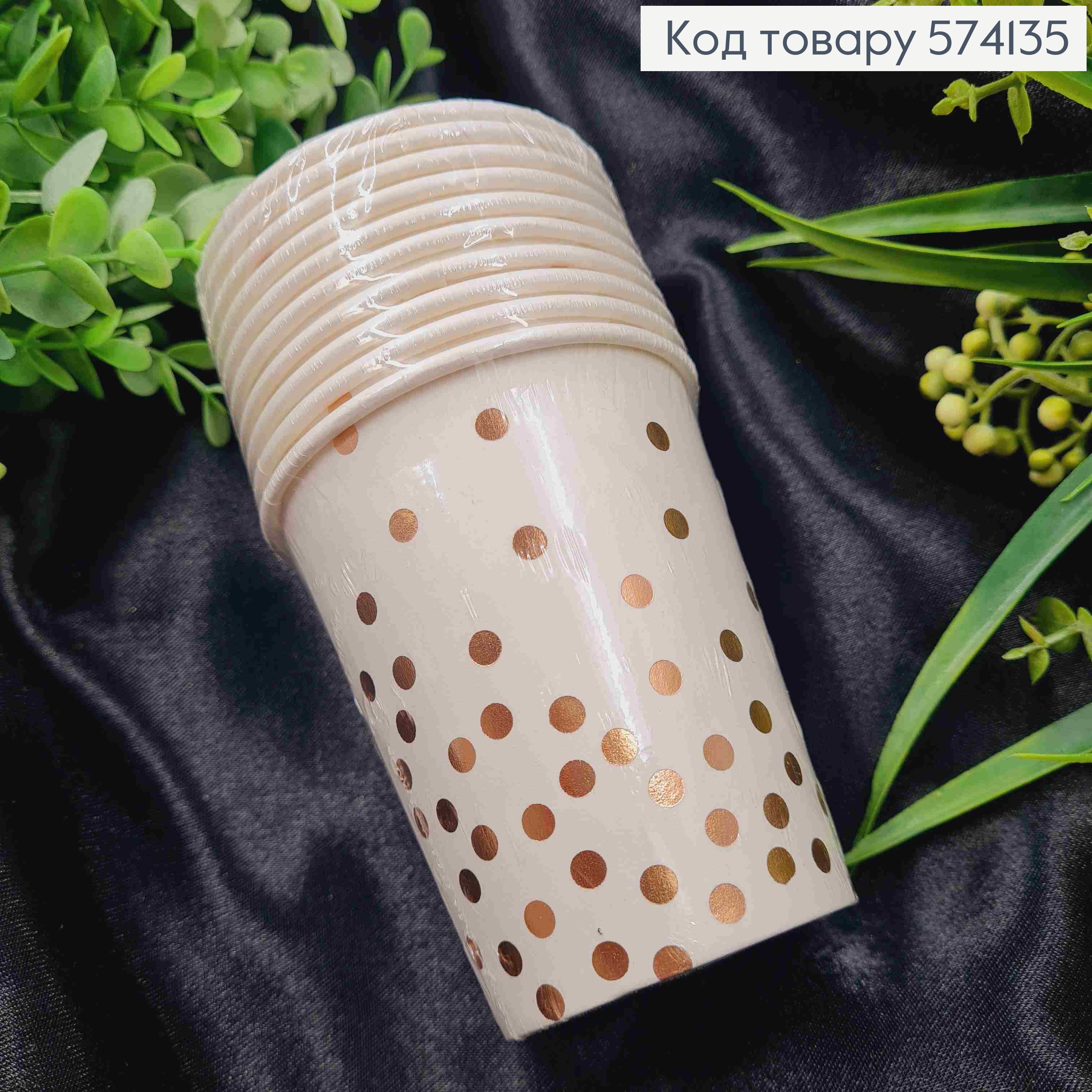 Набір стаканчиків паперових, з "Крапочками" кольору Рожеве Золото, 10шт/уп